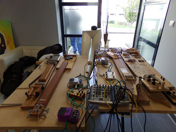 Des instruments improbables faits main avec des matériaux de récupération, quelques pédales d’effets, des objets en tout genre: tels sont les ingrédients qui hantent ces Troupes de l'Imaginaire. La musique créée ici est totalement improvisée, envoûtante, électrique et réellement vivante.