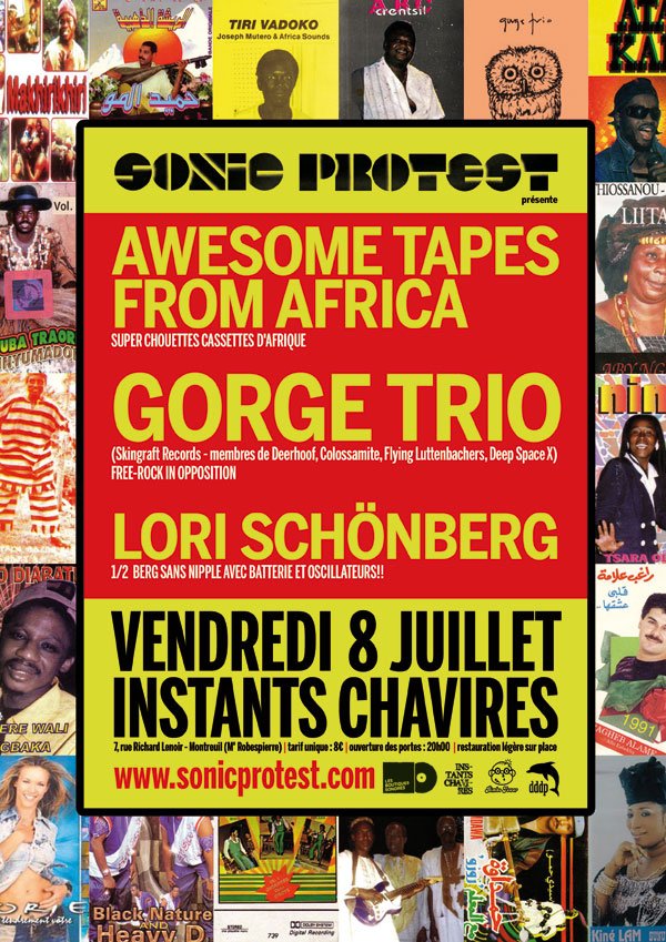 Histoire de se retrouver encore une fois avant la pause estivale, avec des musiciens qui ont déjà participé à l'aventure en 2008 avec d'autres de leurs formations (Deerhoof, Berg Sans Nipple) et pour la première fois à Montreuil, un set de K7 venues d'Afrique…jouées par un new-yorkais !