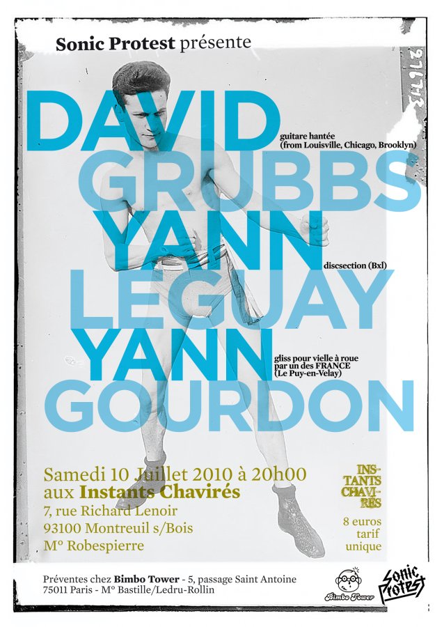 Pas de festival Sonic Protest en 2010, ça souffle encore un peu … mais ça souffle surtout sur les braises et la présence dans le coin de David Grubbs remet le feu aux poudres et permet d'inviter deux artistes qui deviendront des fidèles du festival : Yann Gourdon, qui avait participé en 2008 avec France, et Yann Leguay, pour la première fois à Sonic Protest et aux Instants Chavirés !