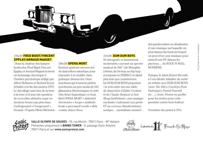 Après une pause bien profitable (entre autre dû à un Sonic Protest 2008 aussi épuisant que magnifique), l'équipe se remobilise et se retrouve pour une première soirée hors-festival (et pour cause) à la découverte de lieux dans lesquels on n'a pas déjà passé toustes beaucoup de temps, histoire d'investir pleinement des espaces et d'y fabriquer des moments … inoubliables.
