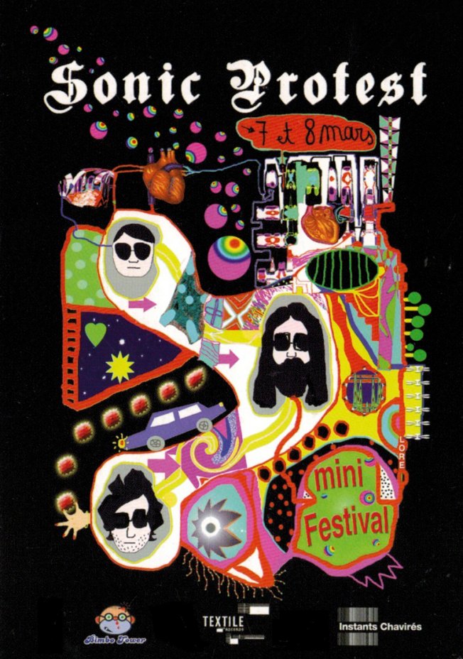 Pas du tout destinée à se reproduire pendant des dizaines d’années, la première édition de Sonic Protest était quasi une manifestation spontanée. À l’annonce de la première (et unique !) venue des Reynols en Europe, la triplette Arnaud Rivière (à l’époque aux Instants Chavirés), Franq de Quengo (à l’époque à Bimbo Tower) et Benoît Sonnette (à l’époque à Textile Records) se réunit au café et décide, après quelques verres, de créer Sonic Protest, un peu pour rigoler (beaucoup), un peu pour créer sa propre géographie des sons.