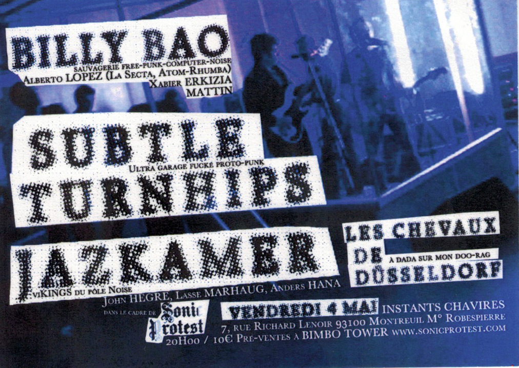 Du jeudi 3 au dimanche 6 mai 2007 à La Générale (Paris), aux Instants Chavirés (Montreuil) et à Mains d'Oeuvres (Saint-Ouen) : à Benoît.