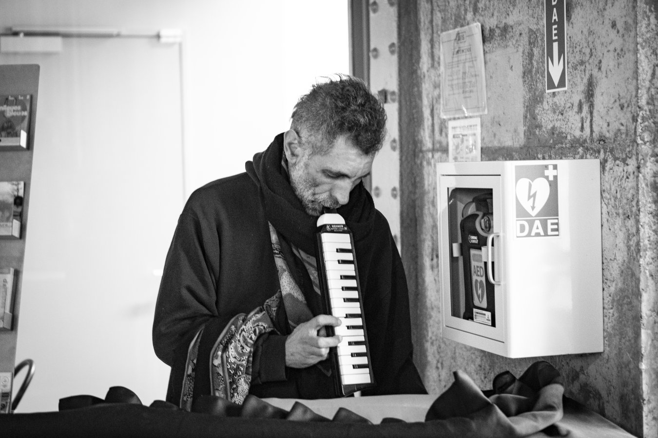 L'énergie électro-shamanique s’échappe du souffle de Damien Grange (Chewbacca, Rature, 80 dates, Bronzy mc Dada, -1...) qui fait résonner à travers son chant, avec des onomatopées blues-folk tonitruantes, ou des poèmes, et à travers ses harmonicas, sa trompette ou le frottement de son cümbüs, de fulgurantes mélopées qui semblent venir du fond des âges.