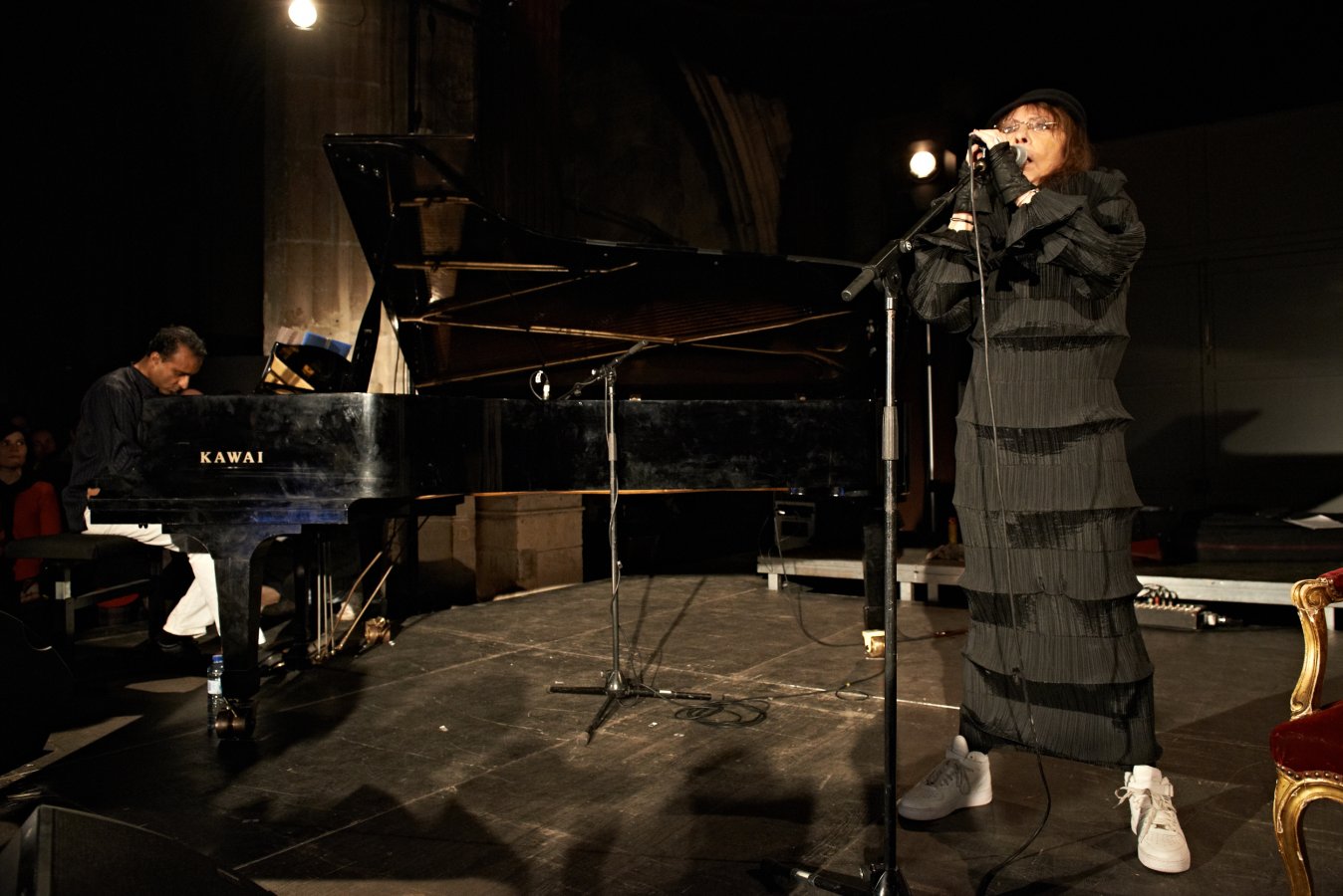 Brigitte Fontaine n'est absolument pas folle. C'est une rebelle, une femme libre, une chanteuse, comédienne, écrivaine, dramaturge qui se contrefout des codes étriqués du show business depuis maintenant quarante ans. Dès ses débuts avec Rufus, Jacques Higelin ou encore Jean-Claude Vannier, elle annonce un ton nouveau et s'impose rapidement comme une icône à la poésie décalée et acide. Le public morne n'a qu'à bien se tenir, rien n'arrêtera cette femme révoltée. Sa rencontre avec le musicien Areski Belkacem à la fin des années 60 est capitale. Ensemble ils signeront une dizaine d'albums déjantés, tous des classiques en leur genre. D'abord signés sur le premier label indépendant français, Saravah (fondé par Pierre Barouh en 1966), ils composent, entre autres, le chef d'oeuvre "Comme à la radio" enregistré avec l'Art Ensemble Of Chicago, puis sur divers labels à diffusion plus large tels que Virgin ("Genre humain", "Kekeland"...) ou Polydor ("Libido", "Prohibition"...). Ces changements de labels n'entraveront en rien sa créativité abondante et toujours aussi politiquement incorrecte comme l'atteste son dernier album en date "J'ai l'Honneur D'être" (Silène/Universal) avec des titres tels que "Au diable Dieu" ou "Amours poubelle". Areski Belkacem est un multi-instrumentiste de génie à l'univers riche et novateur empreint aussi bien de folk expérimentale que de musique kabyle. Au sein d'une musique française beaucoup trop sage, l'union de son univers à celui, plus délirant, de Fontaine représente un moment unique et salvateur. Il est également l'auteur, seul, de deux disques remarquables, "Un beau matin" (Saravah) en 1970 et "Le triomphe de l'amour" (Universal) en 2010. Ses talents ont également été mis au service du théâtre (Peter Brook) et du cinéma. Dondieu Divin est pianiste, violoniste et arrangeur. Il accompagne Brigitte Fontaine sur ses derniers disque (" Rue Saint Louis en l'Île " et " Libido ") ainsi qu'Areski Belkacem lors des "concerts de dessins" donnés régulièrement au festival de la BD à Angoulême. À l'occasion de ce concert unique à l'Église Saint-Merry, Brigitte Fontaine donnera un récital piano / voix et percussions où on pourra entendre de nouvelles versions de son répertoire de chansons hors normes. Brigitte Fontaine n'aime pas faire ce qu'on attend d'elle et ça tombe plutôt bien. Un concert qui s'annonce d'ores et déjà culte.