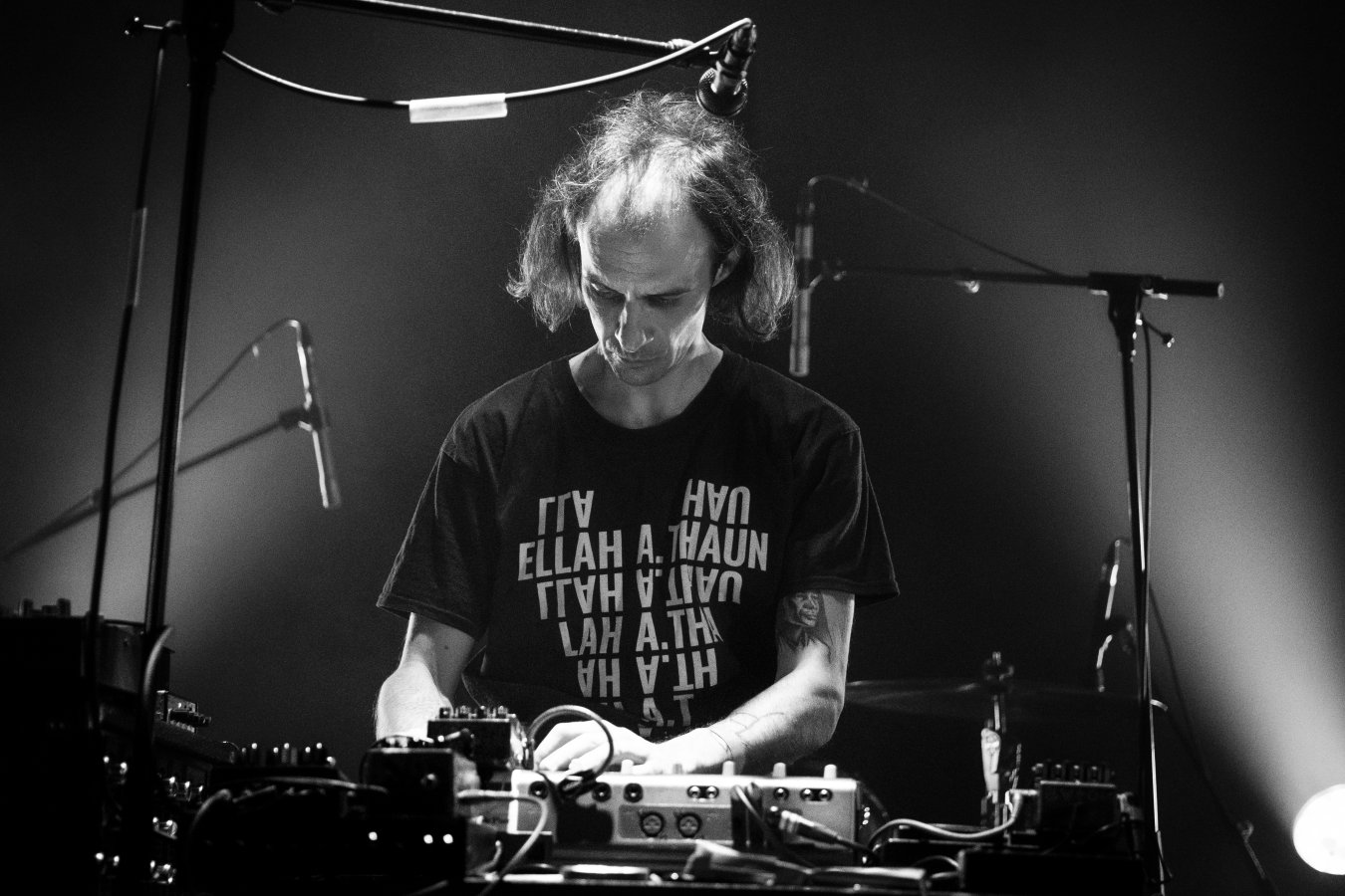 Basé au centre du Nuke, à Amiens-ville même, Romain Simon est un musicien ascendant perfectionniste, ingénieur du son qui claque, et activiste impliqué corps et âme dans le partage de ces énergies qui ne s’échangent que dans les concerts. Batterie complète ou percussions minimalistes augmentées d’électronique tordue et distordue, sa manière de vivre le rythme, sa frappe et son approche du son permettent de l’identifier à la première écoute de ses très très très nombreuses (dé)formations. Du génial et séminal feu Headwar au projet 360° De Haut En Bas, De Bas En Haut Et Latéralement, en passant par La Race, Bâton XXL, Le Bus, La Banane de Hakim ou Me Donner, le parcours de cet artiste entêté mais pas têtu dessine une carte des musiques qu’on aime, celles qui font la part belle à l’ici et maintenant. Aussi généreux que gourmand, il s’active sur scène et à côté, et participe activement à l’activation d’endroits où ça se passe, l’Accueil Froid, le festival L’Homme aux deux oreilles ou la Briqueterie : merci.