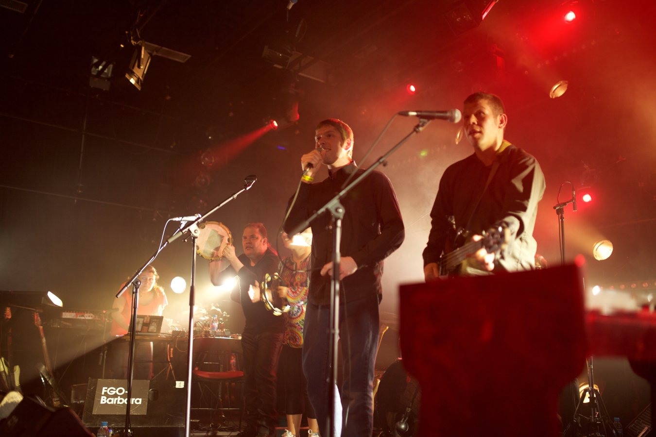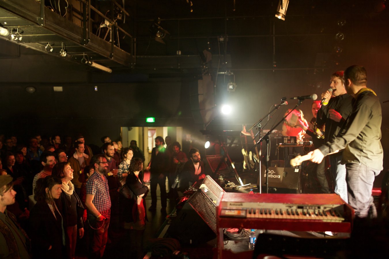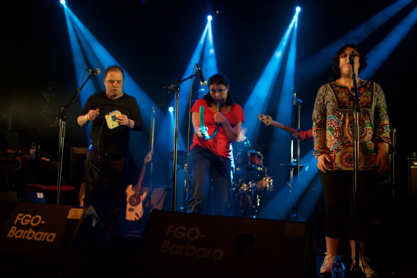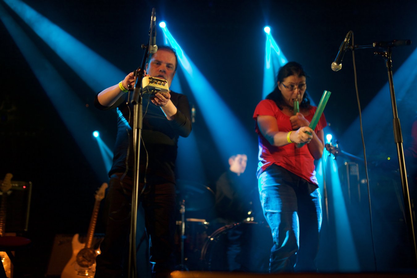 L'aisance avec laquelle les acteurs s'emparent de la scène et des divers instruments mis à leur disposition (guitares électriques, batterie et percussions diverses, claviers, objets amplifiés, effets électroniques, micro) est déconcertante. Le groupe oscille entre free-rock post-kobaïen, improvisations bruitistes, pop song DIY et spoken word déjanté. Une première présentation parisienne très attendue.