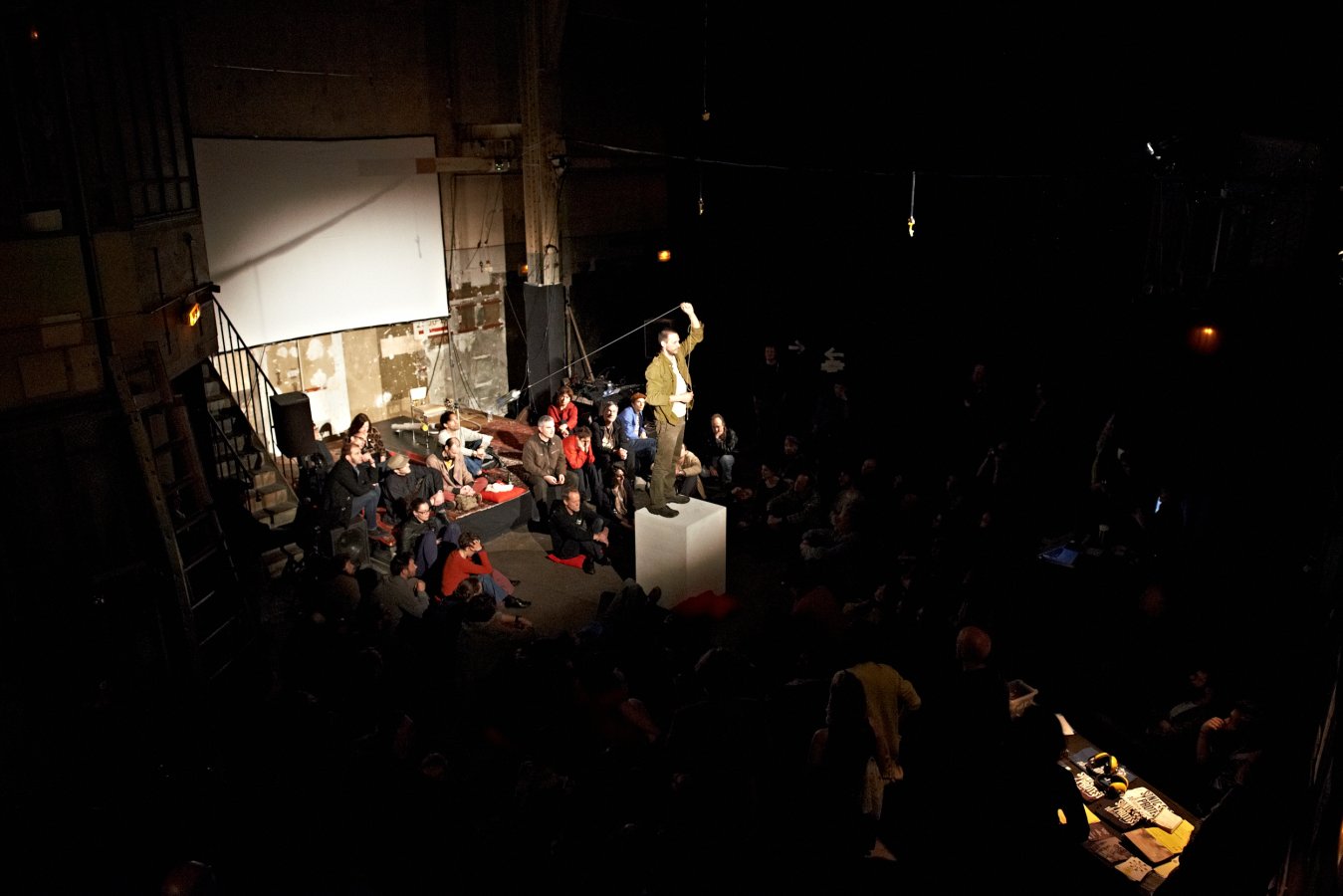 Artiste québécois, inventeur d'instruments, compositeur, performeur, Jean-François Laporte poursuit une démarche hybride intégrant arts visuels et exploration sonore. Fondateur et directeur artistique des Productions Totem Contemporain, il est aujourd'hui reconnu sur la scène internationale pour l'originalité de sa démarche. Depuis ses débuts en musique en 1993, Jean-François Laporte a écrit une soixantaine d'œuvres qui ont été créées et interprétées tant à Montréal qu'ailleurs au Canada, en Europe, en Asie et aux États- Unis. Portant une attention toute particulière aux vibrations qui créent le son, Jean-François Laporte axe l'ensemble de son travail sur le résultat d'expérimentations concrètes de la matière sonore et invente des instruments sans équivalents. Orgue de sirènes, canette sifflante, surfaces de latex tendu mises en vibration via air comprimé telles des oscillateurs acoustiques, souffleries et servo-moteurs sont les éléments de base de son vocabulaire sonore.