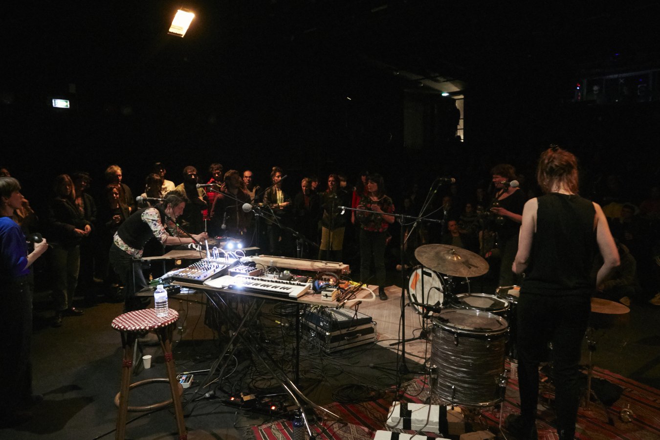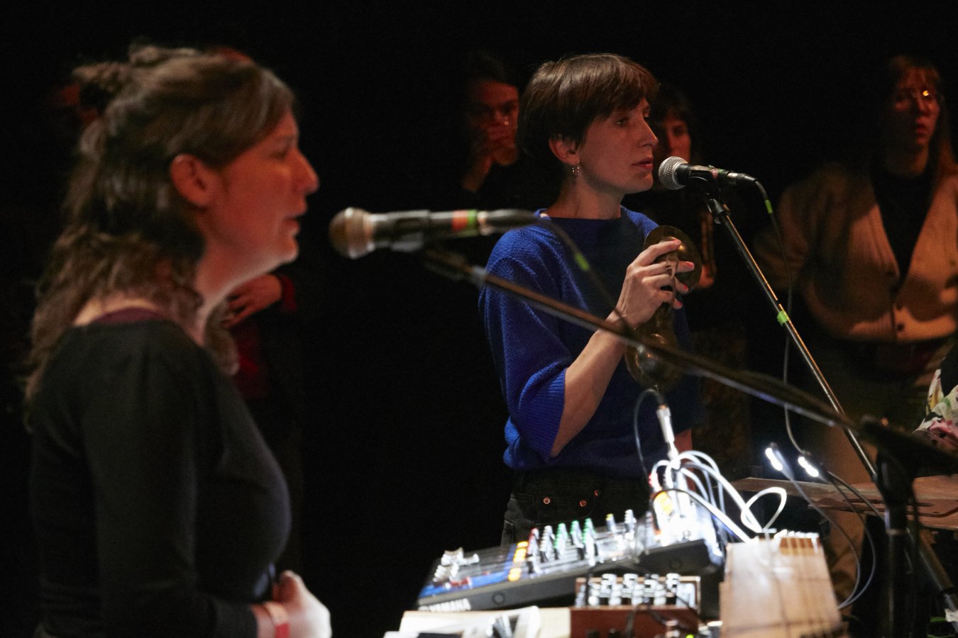 Avec un instrumentarium composite où percussions, objets du quotidien, cordophones et oscillateurs électroniques tissent un tapis sonore où poser leurs voix, les six musiciennes de ladr ache créent un improbable pont entre polyphonies aux échos baroques et signal en dents de scie saturé. Textes, musiques et chansons de récup glanés dans toutes les traditions du futur… Elles font puissamment scintiller le présent et invitent le public à encercler le cercle qu’elles forment sur scène ou dans la salle. Des cérémonies à vivre ensemble où le collectif l’emporte à chaque fois.