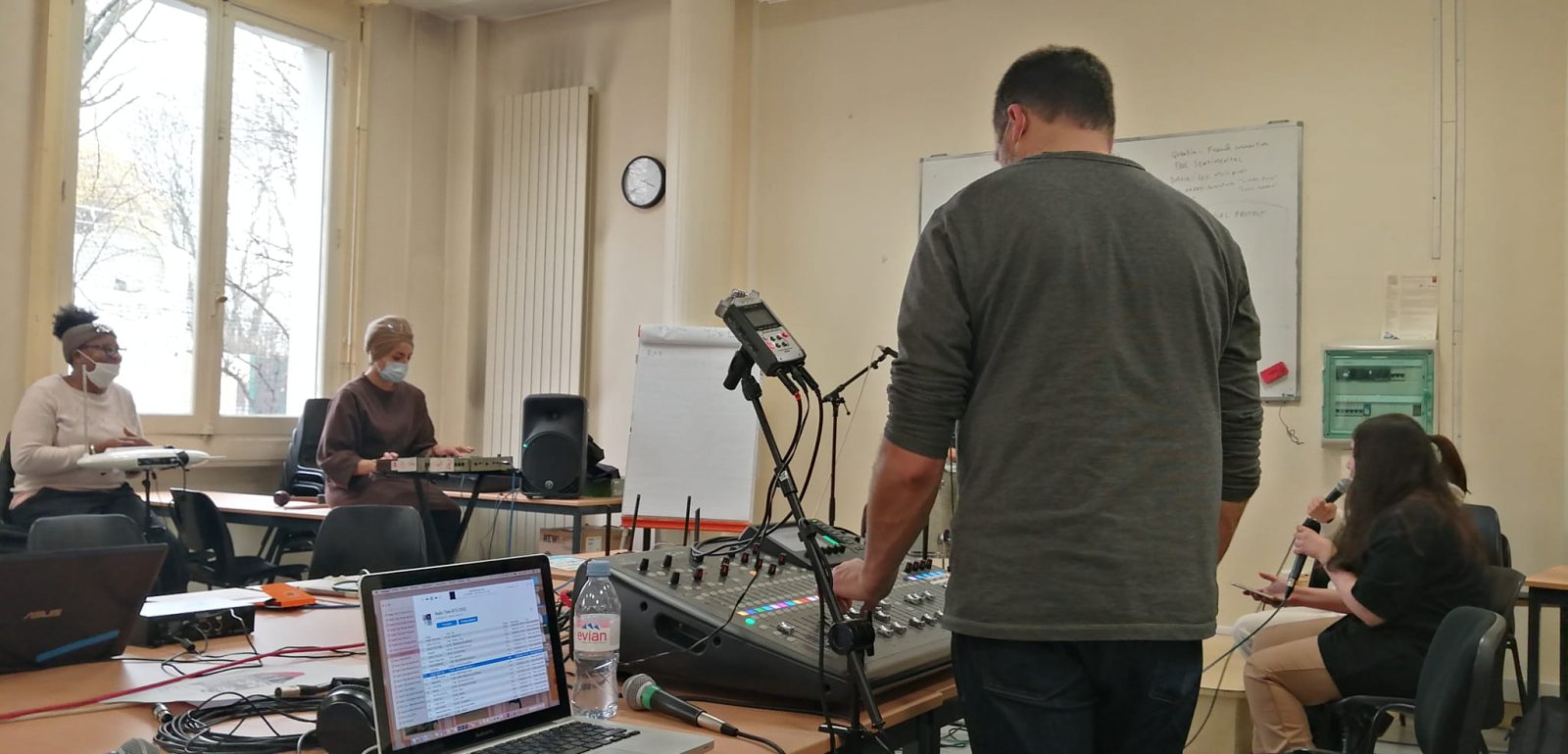 Franq de Quengo et les étudiantes de l'IRTS de Montrouge