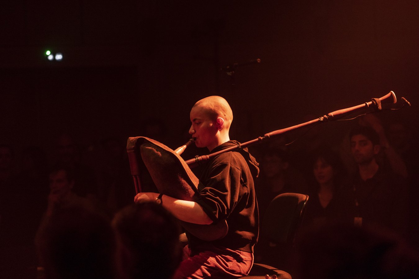 Lise Barkas joue de la vielle à roue et de la cornemuse, instruments dont elle explore toutes les possibilités, des sons et chuintements mis de côté par le répertoire traditionnel aux ritournelles total bourrée d'icelui.
