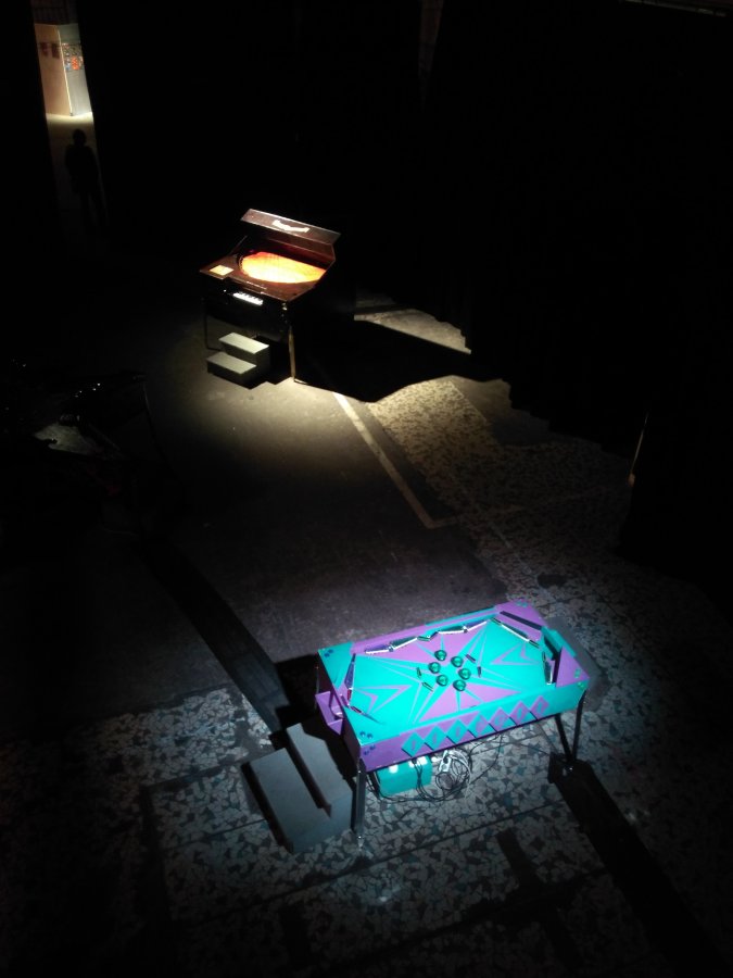 Bercé par les salles d’arcade lors de son adolescence en Australie, Lucas Abela leur rend un hommage décalé avec la construction de plusieurs flippers et bornes d’arcades, dont il tord la forme et l’intention pour les transformer en ma- chines musicales infernales.