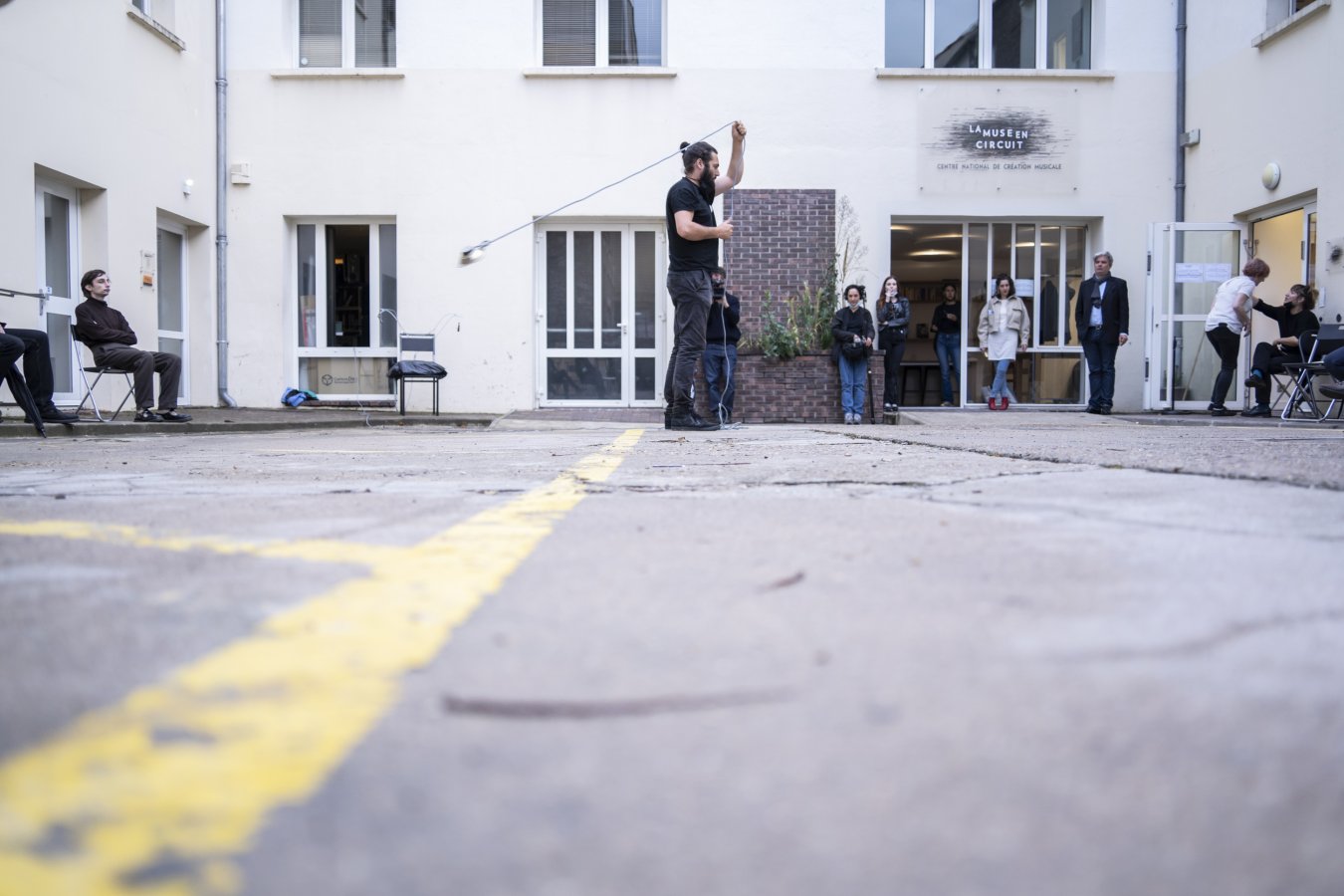 Samā‘ (du turc: semâ) est un mot qui renvoie à la notion d’audition spirituelle. Samā‘ désigne également une danse giratoire des derviches tourneurs soufis. Dans cette performance, Lucien Gaudion crée une spirale acoustique en faisant tournoyer un haut-parleur pour sculpter l’espace sonore. Les drones (sons continus) sont élaborés au préalable in situ, en fonction des résonances de la pièce. Le tournoiement, par la vitesse et la longueur de câble donnés par l’interprète dessine une spirale invisible tout en révélant les propriétés acoustiques du lieu.