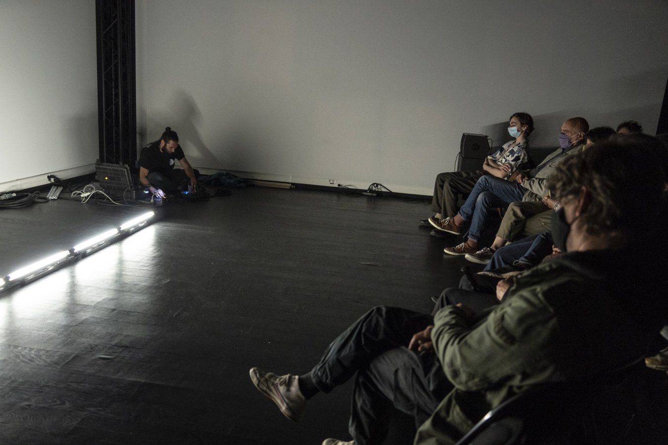 L’influx électrique devient perceptible à la fois par la lumière et le son dans un dialogue ultra-synchrone. L’électricité devenue phénomène physique ré-agence l’espace de monstration dans une expérience à la fois synesthésique et épileptique.