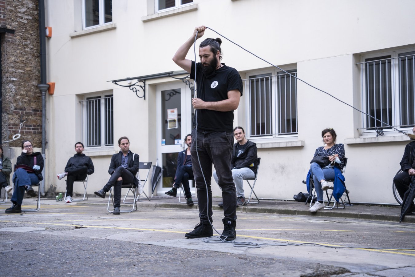 Plutôt bien occupé en général, à l’invitation de Sonic Protest il prend une semaine pour se poser à La Muse en Circuit et préparer la diffusion de deux pièces adaptées au studio Luc Ferrari (dedans) et à la cour (dehors) de du Centre National de Création Musicale alfortvillais !