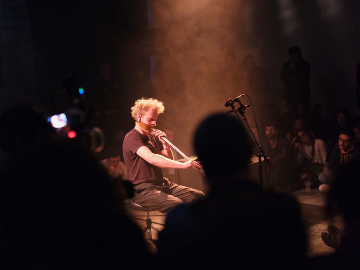 Personne ? Hhhmm, Lukas de Clerck a probablement quelques idées sur la question puisque c’est sur la réinvention de cet instrument que se base une bonne part de son travail. Dépassant l’archéo-musicologie, les recherches empiriques de cet artiste inévitablement autodidacte l’ont conduit (en collaboration avec Noir Métal et Jot Fau) à la création d’une version de cet instrument millénaire, The Telescopic Aulos of Atlas. Textures bruitées, microtonalité, éternuements, sifflements ou effets psycho-acoustiques… En étendant le vocabulaire de cet instrument unique, Lukas de Clerck s’extrait de l’histoire pour évoluer entièrement dans la vibration du présent, dans une remarquable tension entre l’extra et l’ordinaire.