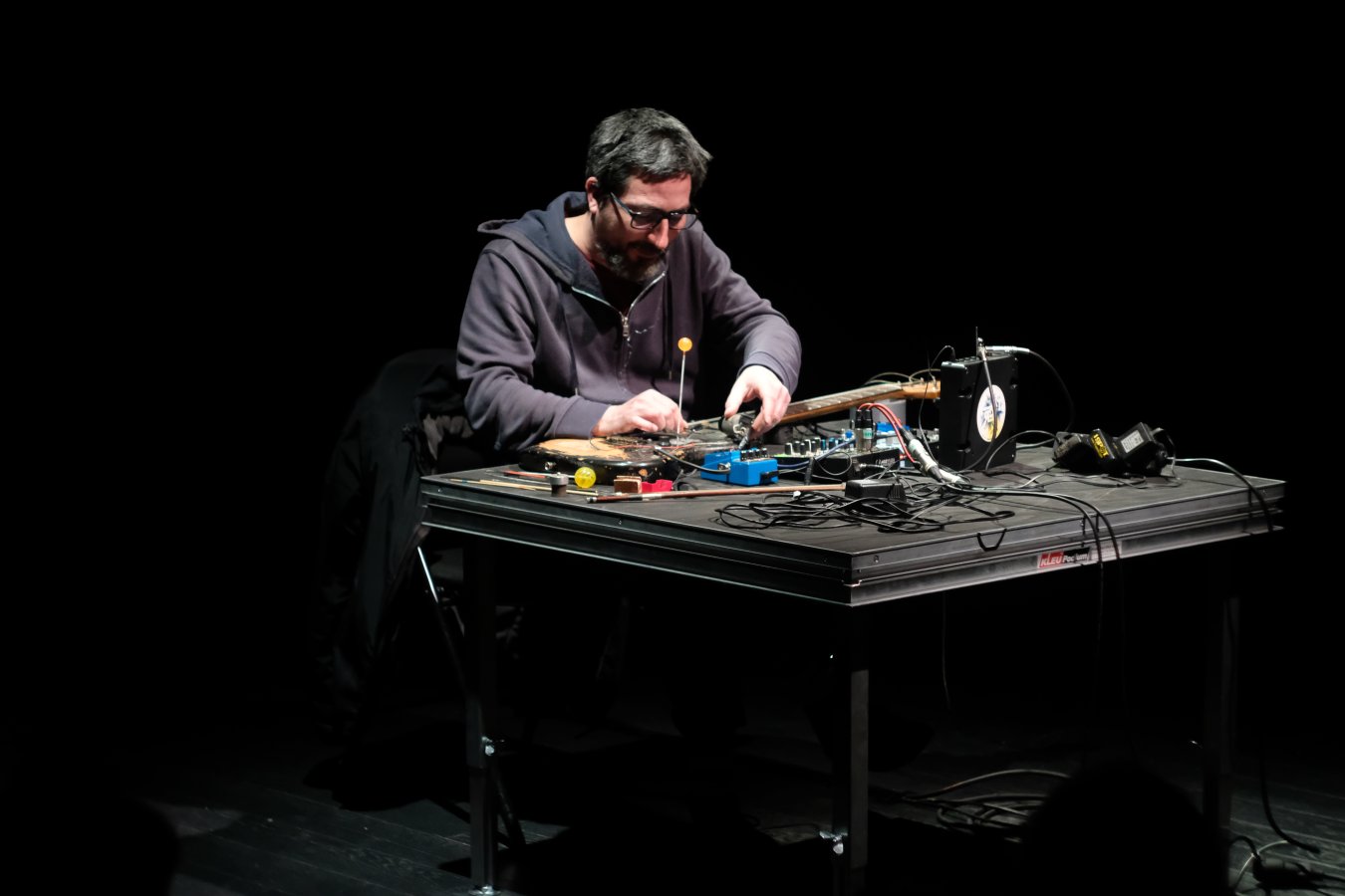 Musicien français vagabond (Berlin, Naples), Olivier Di Placido a longtemps hésité entre la chirurgie et la guitare, et c’est tout logiquement qu’il a désassemblé totalement son instrument pour en inventer une version de table, pliable et à micro mobile. Entre blues destructuré et courts-circuits, noise et composition électroacoustique en direct, il ausculte l’objet avec une attention toute particulière pour les accrocs, les creux et les bosses. Adepte du duo qui tranche, il a fabriqué, pour un jour ou pour toujours, des formules où on a pu le voir et l’entendre, câble de masse dans la bouche, aux côtés de Crank Sturgeon, SEC, Fritz Welch, Basile Ferriot, Peter Schlewinski, Rubén Patiño, ou Francesco Gregoretti et on ne sera pas surpris de savoir que sa musique a été publiée par des labels/scalpels comme Viande Records, Scrotum Records ou Human Sacrifice.