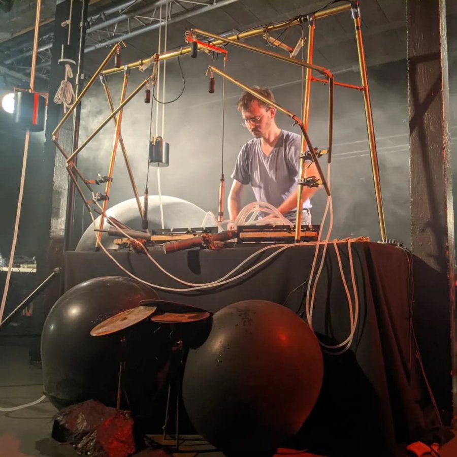 Octave Courtin est un artiste sonore qui conçoit des instruments expérimentaux à partir d'objets détournés et de mécanismes pneumatiques. Au cœur de sa démarche se trouve le projet Atmos, où de larges ballons servent de réserves d'air pour alimenter des éléments d'accordéons et d'harmoniums via une console de contrôle sur mesure. L'artiste explique comment sa formation en lutherie et son intérêt pour la mécanique ancienne lui permettent d'allier précision technique et recherche esthétique. Il décrit également l'aspect nomade et évolutif de ses créations, conçues pour être transportables tout en intégrant une dimension chorégraphique. Enfin, l'entretien souligne la transition de son œuvre vers une forme de musicalité méditative, privilégiant les sons continus et l'exploration des harmoniques.