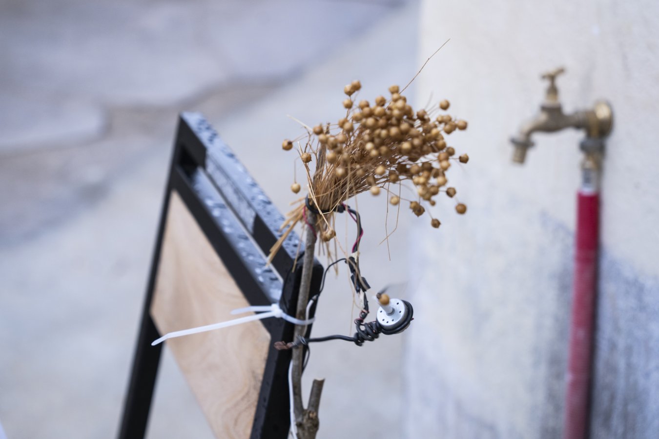 Aussi influencé par l’écoute de la pluie du haut du clocher où il a joué du carillon pendant deux ans que par les travaux d’Alvin Lucier ou Ellen Fullman, Pierre Berthet bâtit un large éventail d’objets qui sonnent, d’instruments fragiles plus ou moins motorisés. En cherchant des points d’équilibres précaires, il met en place des systèmes qui s’interdisent la fiabilité. Entre installation et environnement activable lors de performances, le petit monde de Pierre Berthet réhabilite des objets du quotidien en faisant entendre leurs qualités sonores, tel l’aspirateur inversé, l'Expiration (un de ses plus grands tubes) qu’on espère bien entendre donner la pulse dans la cour de la Muse en Circuit.