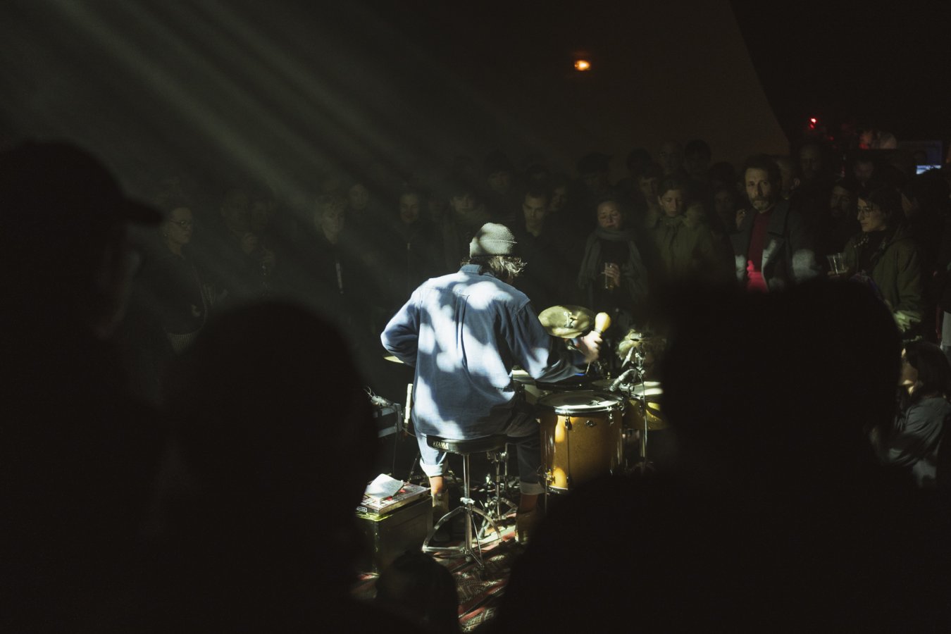 Amateurs de samples chelous dépitchés, savamment imbriqués puis désimbriqués dans la partition d’un percussionniste émérite, approchez. Ce concert est pour vous. A la scène, Plein Soleil est ce musicien frappant ses instruments dans une dynamique hypnotique, à la ville, il est Jonathan Grandcollot, batteur des excellents groupes Société Étrange (présents à Sonic Protest 2018), François Virot, Panpanpan. Quand son collègue et ami Raymonde, programmé également le même jour, émerge depuis le fond du sommeil ambient, Plein Soleil, lui, est déjà levé et parti depuis longtemps dans la jungle polyrythmique, avançant déterminé dans la fougeraie, la machette à la main. Une percée à travers une forêt rythmique dense, pleine de songes et d’oiseaux sonores rares vous attend, et Plein Soleil sera votre guide ! Jugez en par vous même sur cet excellent EP, sorti sur Zèbres Records, intitulé « U. V. ».