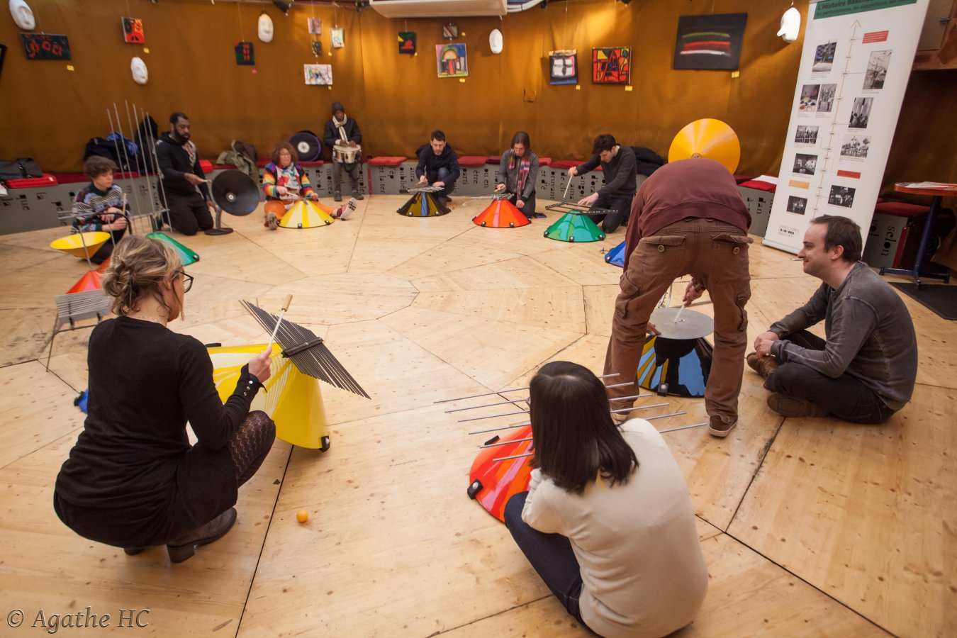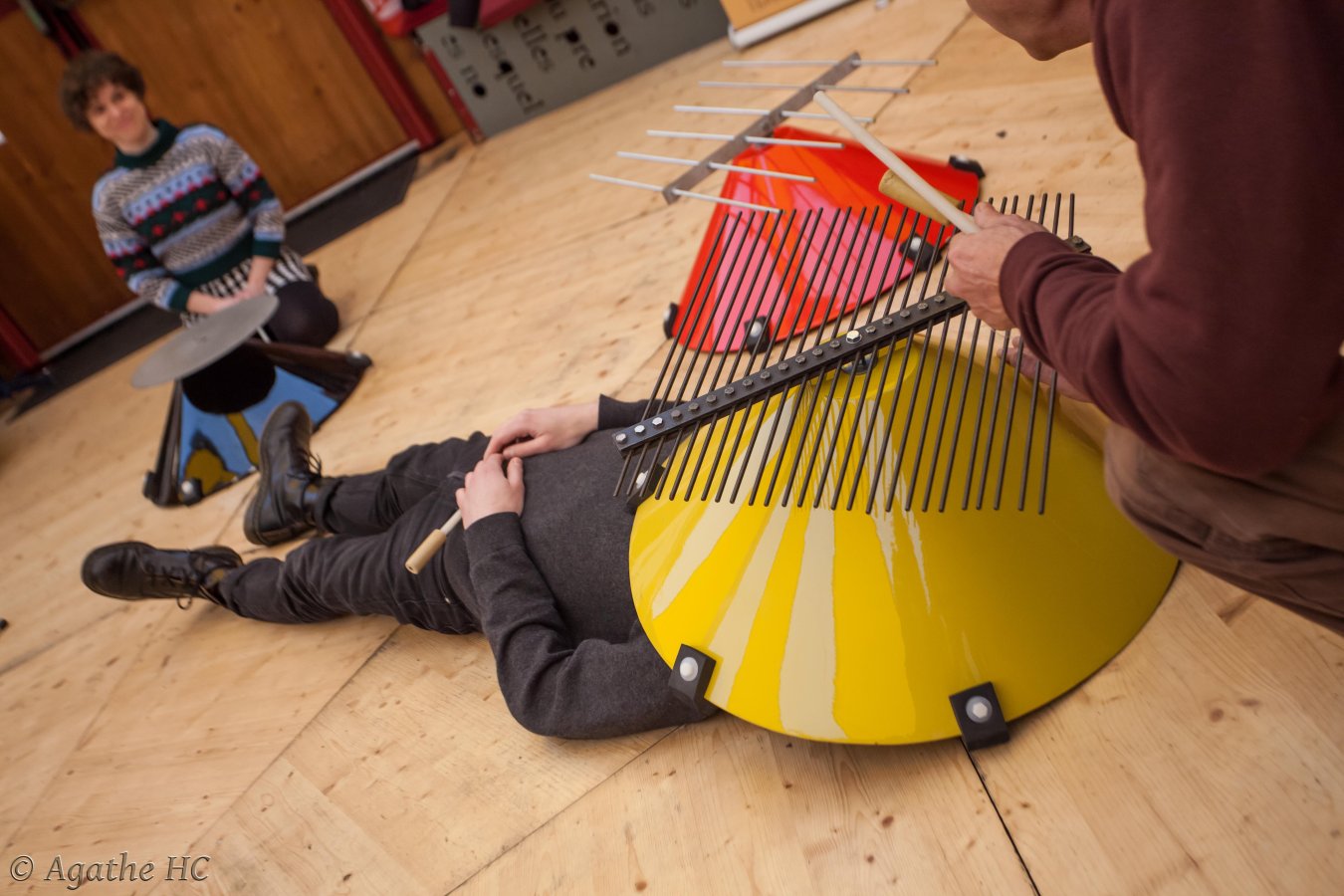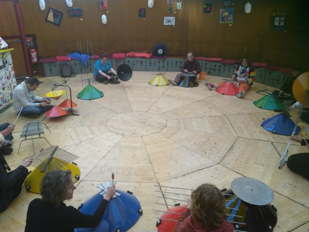 Elle propose un atelier découverte et exploration de ces instruments hors-normes avec tous les sens. Jeux collectifs et expérimentation de dispositifs approfondissant l'écoute pour arriver à un moment d'improvisation collective.