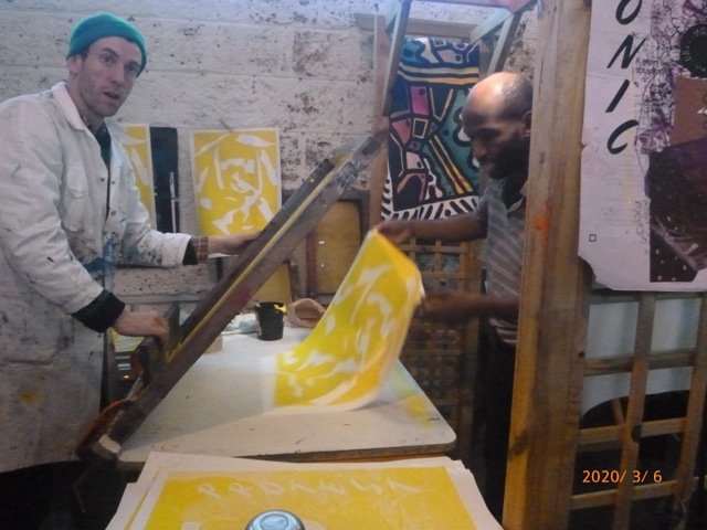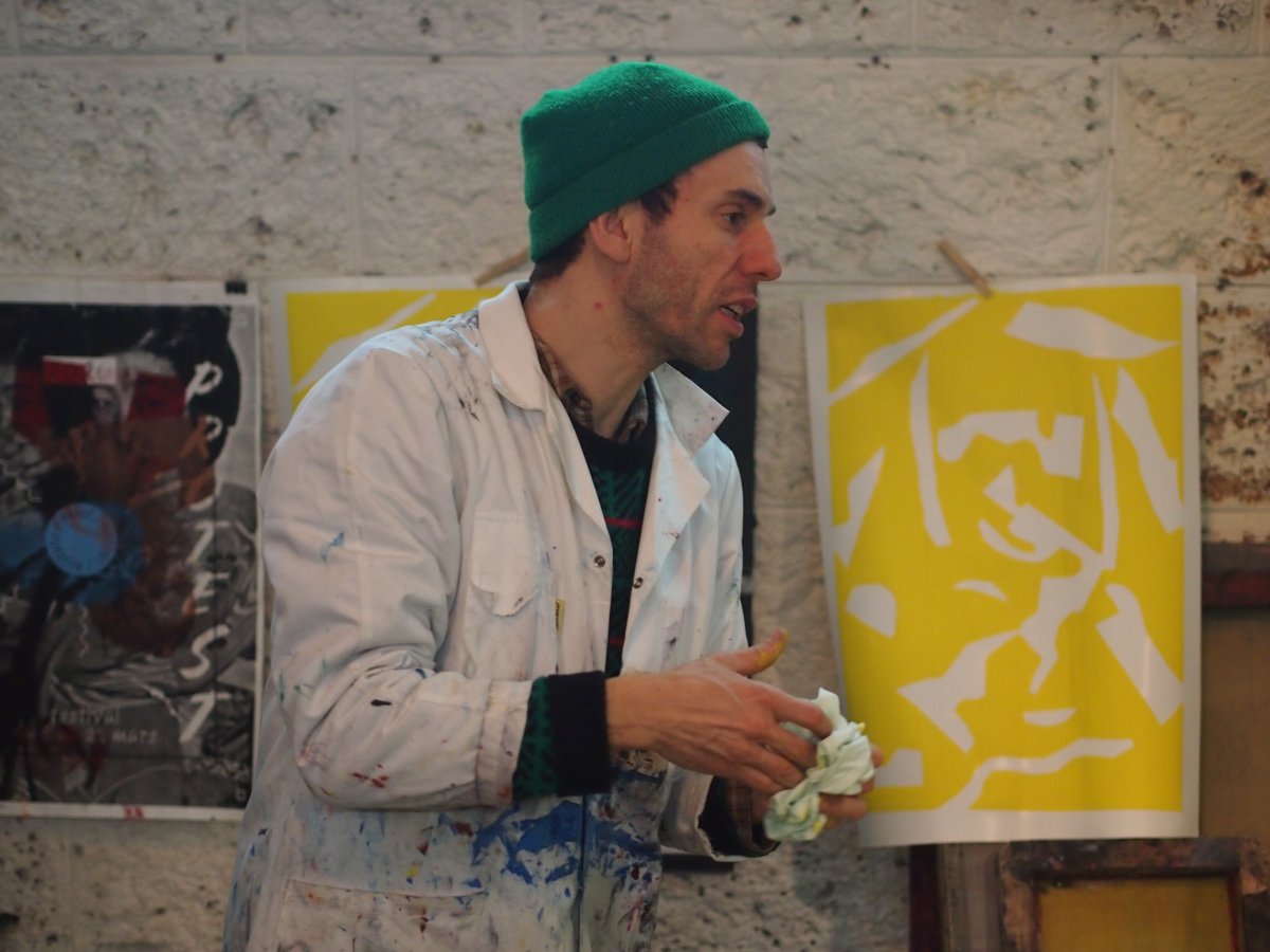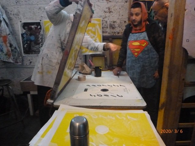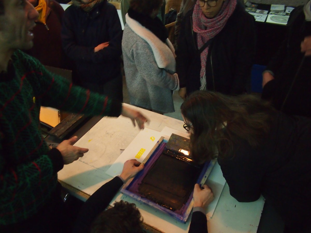 co-animé par l'atelier sérigraphie de l'HDJ d'Antony, le sérigraphe Igor Boyer (hors-cadre) et Matthieu Morin (collectif La Belle Brute)