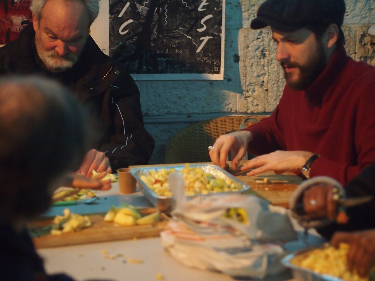 Comment préserver l'idée " d'atelier" tout en ayant une production à assurer? Comment permettre que la libre circulation ne tourne pas à la cacophonie, et que chacun puisse jouer dans son registre, tout en restant à l'écoute de l'autre? Le Collectif Encore Heureux... vous invite à venir décortiquer, découper, hacher, malaxer toutes ces notions tout en préparant le repas qui sera servi à midi!