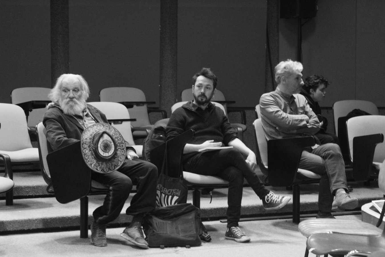 Pour lancer la discussion, nous avons convié quelques personnes à nous parler de leurs expériences. Christophe Laurens tout d’abord qui s’est intéressé aux modes d’habiter expérimentés sur la ZAD de Notre-Dame-Des-Landes, entre cabanes auto-construites, autogestion, et tentative d'inventer des nouvelles formes d'organisation collective et a décidé d’y emmener ses étudiants pour un travail de recherche, publié depuis sous le titre « Notre Dame des Landes, ou le métier de vivre ». Alexis Forestier a fondé le groupe Les Endimanchés en 1985 entre musique industrielle et chanson populaire, puis il crée la compagnie Les Endimanchés avec laquelle il monte de nombreuses créations. Intéressé par les aléas de la raison, il travaille de nombreuses années à la Clinique de La Borde et collabore depuis 2008 avec André Robillard. En 2013, Alexis participe à la création de La Quincaillerie, lieu d’expérimentation au sens propre, aussi bien de mode de vie en commun, de pratique de création que d’accueil. Enfin, Roberta Trapani, membre du collectif de recherche-action Patrimoines Irréguliers de France (PiF) et rédactrice de la revue en ligne Hors-les-Normes, et l’artiste Jean-Luc Johannet nous parleront de l’oeuvre titanesque de ce dernier, qui s’inscrit à sa façon, ou au moins en partie, dans le vaste univers des environnements irréguliers, « composés d’utopies architecturales, d’environnements ornés par des habitants-paysagistes, de cabanes bricolées sur des ZAD et des ronds-points, ou encore d’installations et de jardins urbains clandestins où l’on cultive la sociabilité, la réciprocité et l’expression créative »