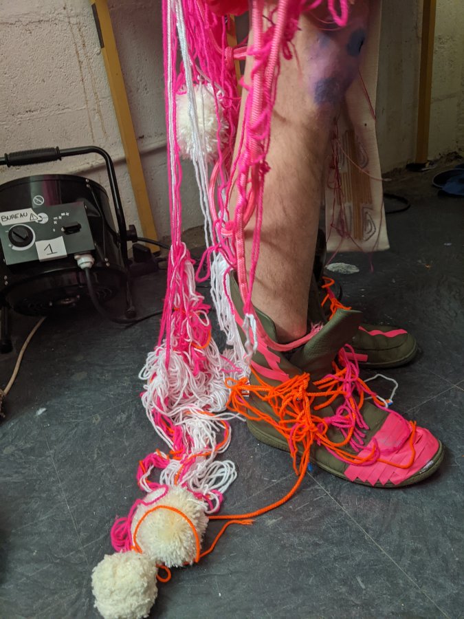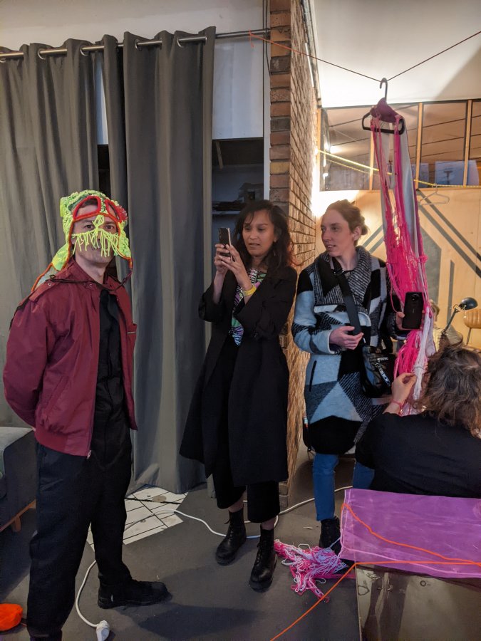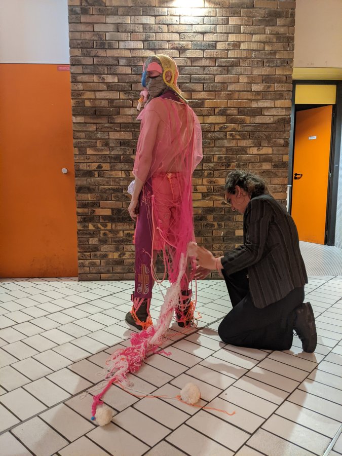 Atelier Kostüm Küstom Porté par le duo d’artistes Barbara Massart de la “S” Grand Atelier (Centre d’art brut et contemporain / Belgique) en collaboration avec le groupe Infecticide. Un atelier d’improvisation textile sur les 2 jours. Une mission commune : confectionner ensemble les costumes de scène d’Infecticide pour le concert du samedi soir.