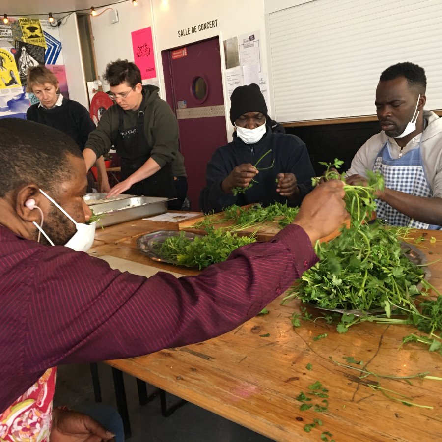 Atelier cuisine co-animé par les équipes de La Trame et du collectif Encore Heureux…ou comment décortiquer, découper, hacher, malaxer ensemble la parole et les aliments tout en préparant le repas qui sera servi à midi !