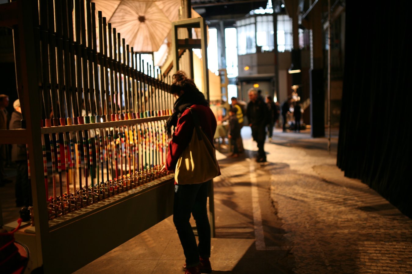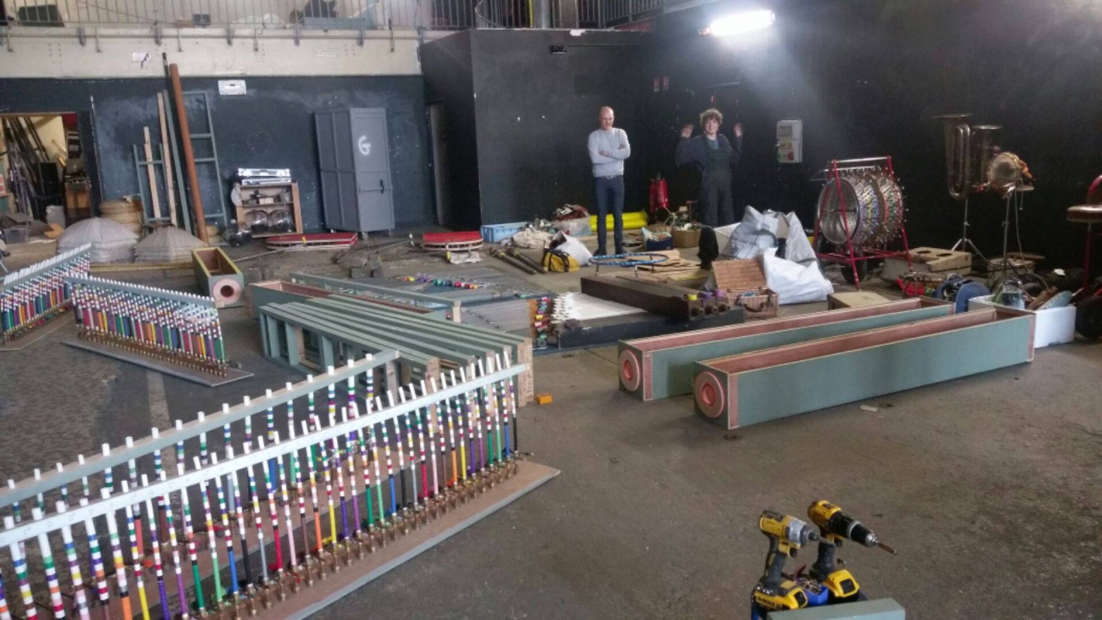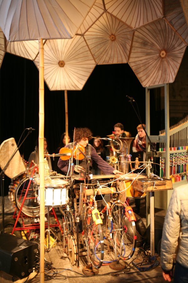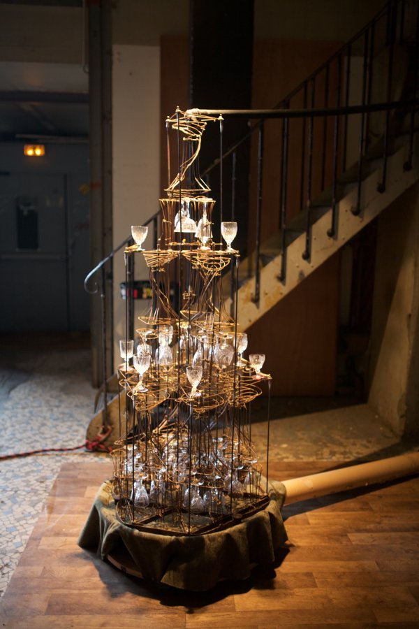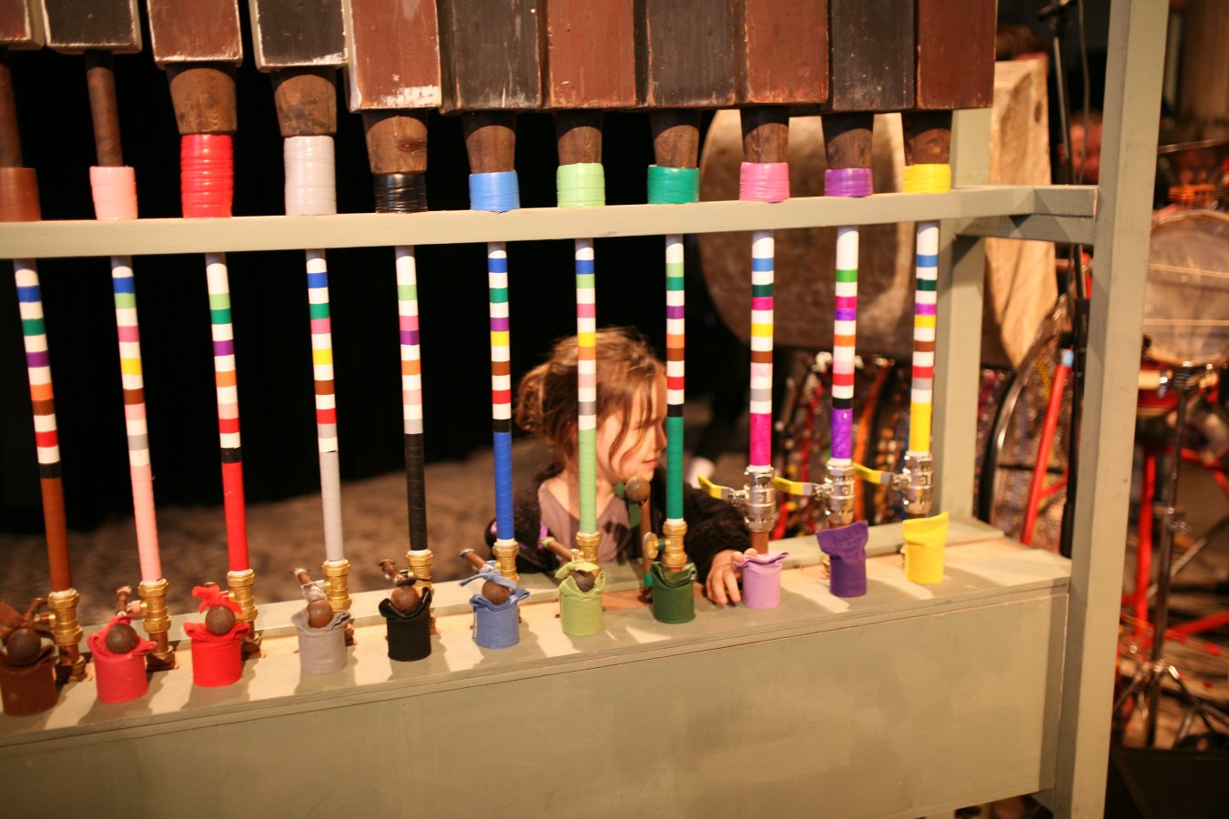 Entre art cinétique et art sonore, tous ses instruments et sculptures sont fabriqués de ses mains à partir d’objets de récupération : roue de vélo, machine à écrire, chambre-à-air, etc. Conçus quasi comme des anti-automates, ses objets restent inertes sans les humains qui les activent. Humaniser la machine et/ou mécaniser l’humain : Sarah Kenchington s’occupe du chaînon manquant !