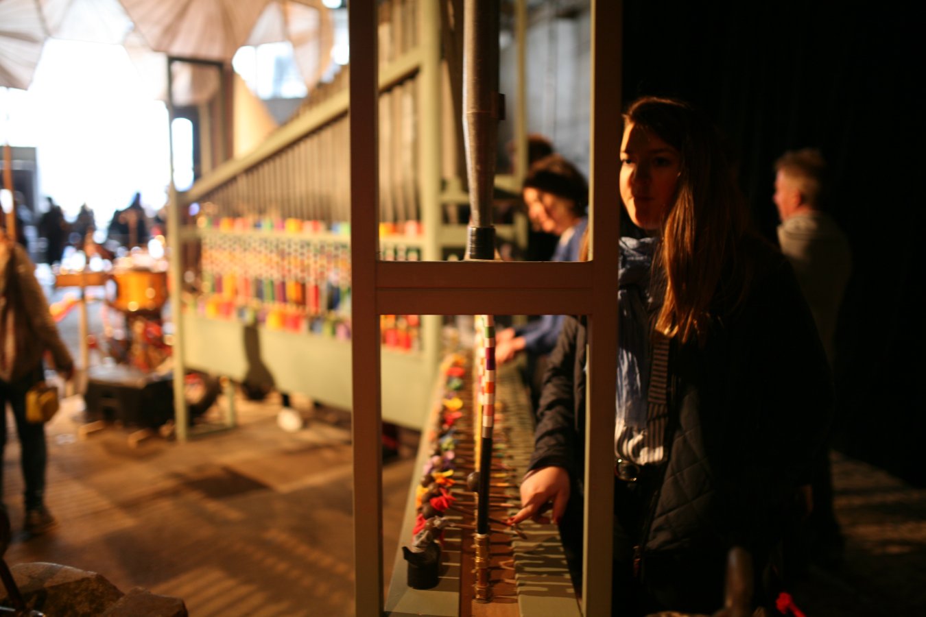 Les puissances en question dans ses œuvres sont à l’échelle de la nature et, dans ses propositions, Sarah Kenchington met en jeu des énergies telles que la force humaine, le mouvement de l’océan ou le débit d’air d’un soufflet géant. Rien de passéiste, ceci dit, dans la démarche : si ses installations auraient pu fonctionner avant l’invention de l’électricité … elles pourront également toujours être jouées quand celle-ci manquera !