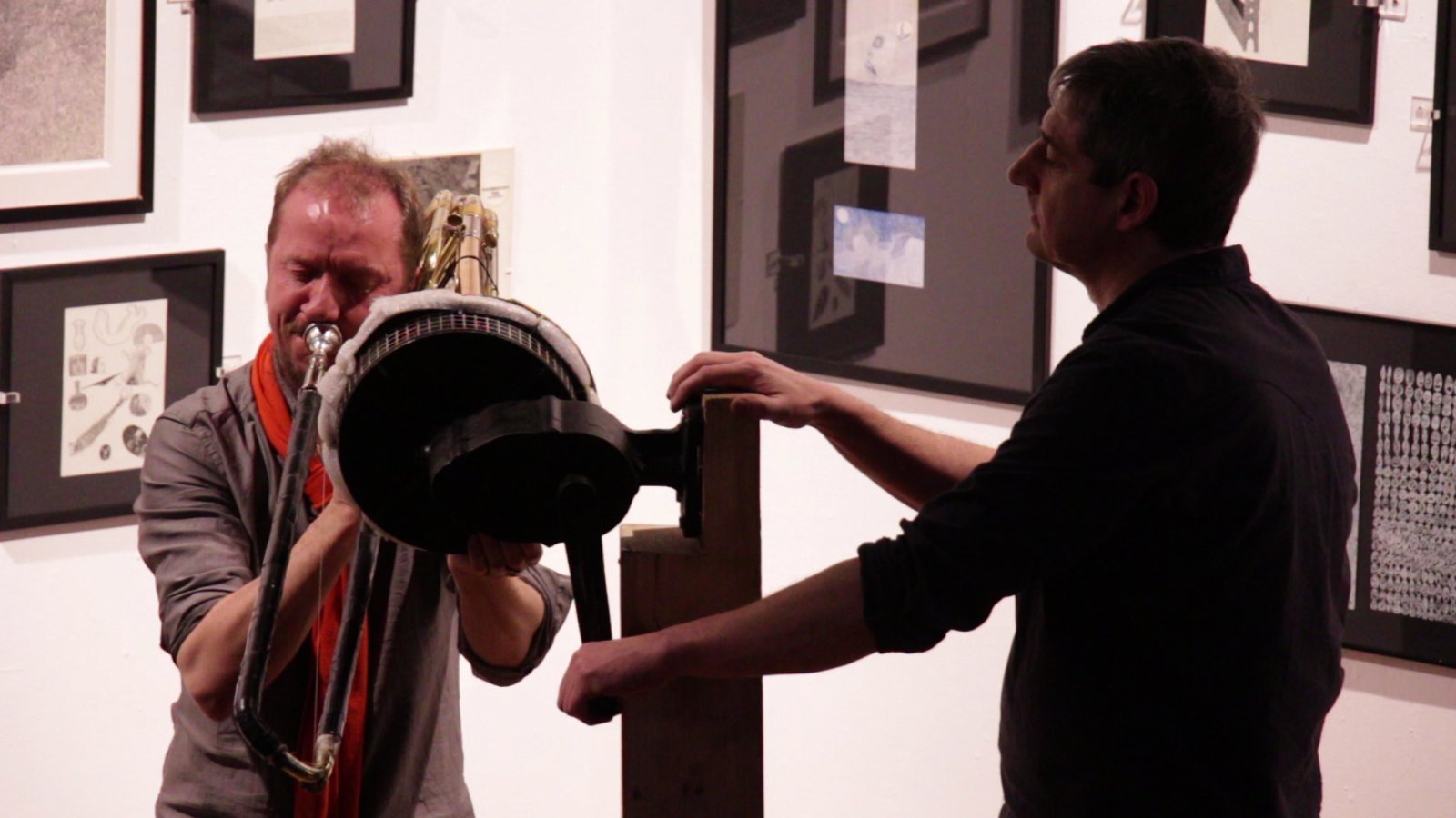 Thierry Madiot Il réalise ici avec Alerte une performance à base de modulation en anneaux acoustiques pour trombone et sirène aérienne. Un glissando hypnotique crée ainsi un long crescendo / decrescendo qui n'est pas sans rappeler la pièce «Wind Shadows» du compositeur minimaliste Alvin Lucier. Comme sur la photo, c'est Yanik Miossec, son compère de Phonoscopie, qui tournera la manivelle !