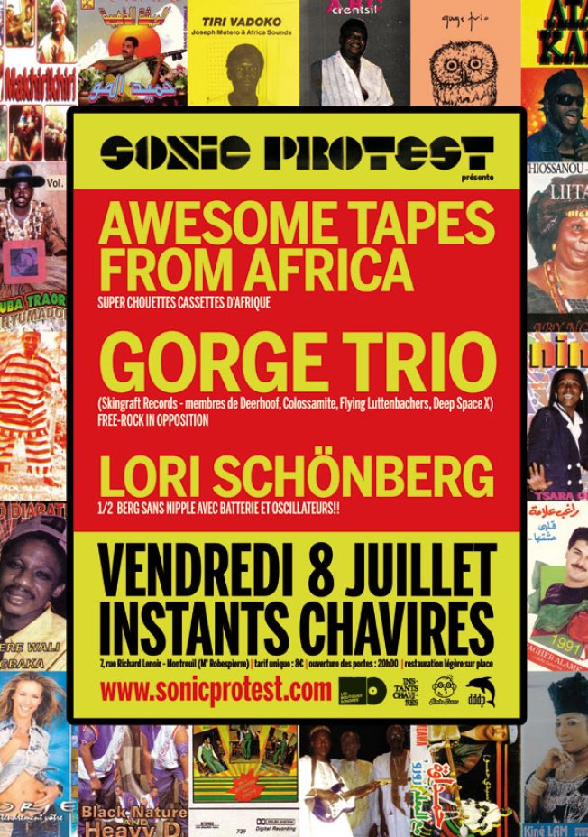 Histoire de se retrouver encore une fois avant la pause estivale, avec des musiciens qui ont déjà participé à l'aventure en 2008 avec d'autres de leurs formations (Deerhoof, Berg Sans Nipple) et pour la première fois à Montreuil, un set de K7 venues d'Afrique…jouées par un new-yorkais !