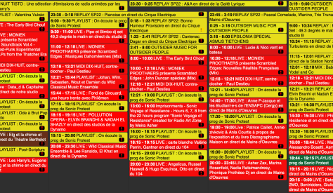 À une série touffue de soirées de concerts et performances, il s’agira aussi d’ajouter, pour ne pas se quitter en journée, la visite de l’exposition qui donne à voir ce qu’on entend et/ou l’écoute de la radio du festival, toujours plus orientée direct/live et émissions exclusivement concoctées pour l’occasion.