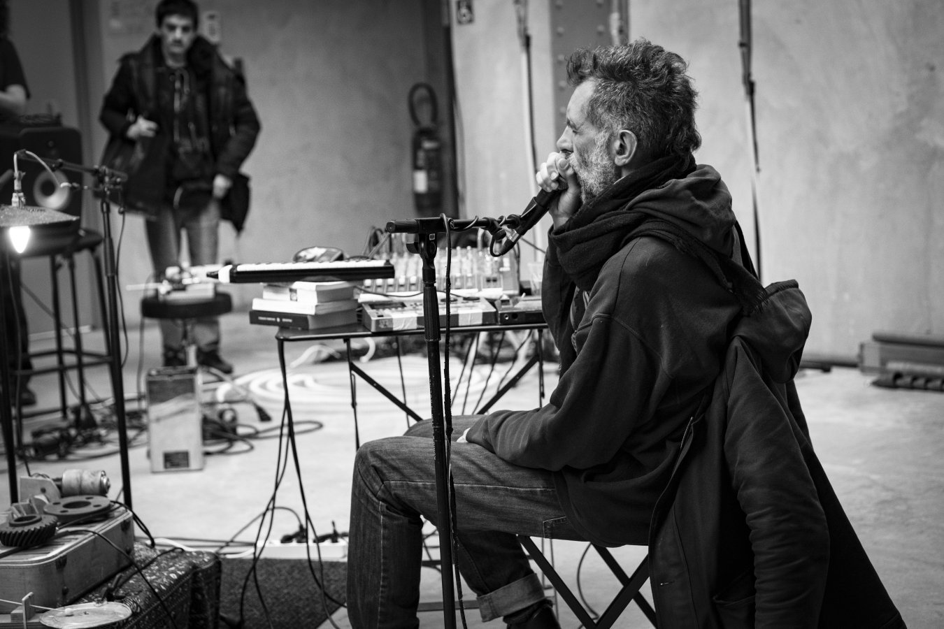 L'énergie électro-shamanique s’échappe du souffle de Damien Grange (Chewbacca, Rature, 80 dates, Bronzy mc Dada, -1...) qui fait résonner à travers son chant, avec des onomatopées blues-folk tonitruantes, ou des poèmes, et à travers ses harmonicas, sa trompette ou le frottement de son cümbüs, de fulgurantes mélopées qui semblent venir du fond des âges.