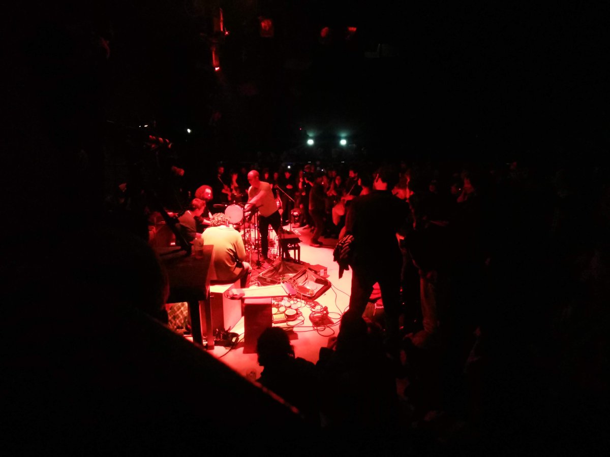 En s’autorisant ce geste pour les sans-folklores, cette panique chantée où les rumeurs de musiques anciennes ou lointaines sont volontairement brouillées par des airs de chanson française, italienne et arabe, le désormais quintet s’offre la même liberté de transgression avec l’idée même de concert : sans début ni fin, le temps du spectacle et le temps quotidien se confondent afin de vider délibérément de toute autonomie la temporalité de la performance.