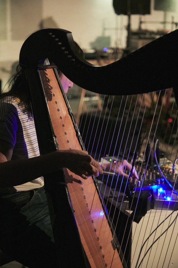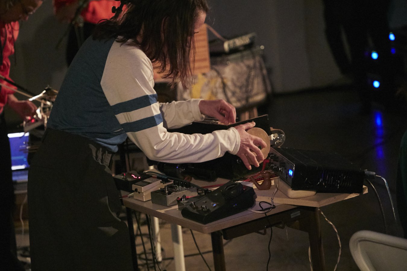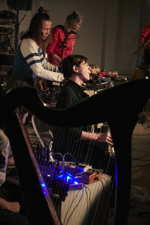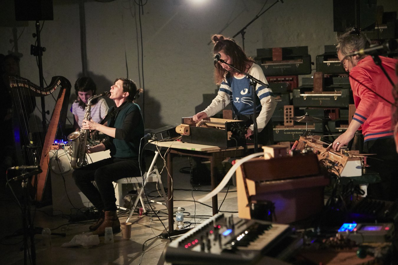 À travers un instrumentarium luxuriant - composé d’instruments acoustiques, électroacoustiques, inventés, d’objets détournés, de dispositifs électroniques et de voix - ces sept artistes utilisent l’improvisation libre afin de dialoguer avec ce qui les entoure. Avec au centre de la pratique « l’ici et le maintenant », une attention toute particulière est portée au son, à l’espace et à la communauté qui prend éphémèrement vie.