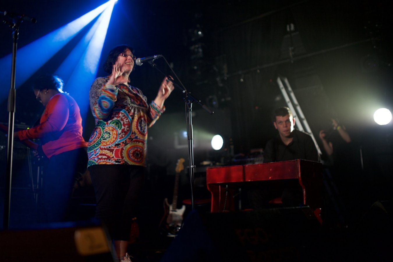 L'aisance avec laquelle les acteurs s'emparent de la scène et des divers instruments mis à leur disposition (guitares électriques, batterie et percussions diverses, claviers, objets amplifiés, effets électroniques, micro) est déconcertante. Le groupe oscille entre free-rock post-kobaïen, improvisations bruitistes, pop song DIY et spoken word déjanté. Une première présentation parisienne très attendue.