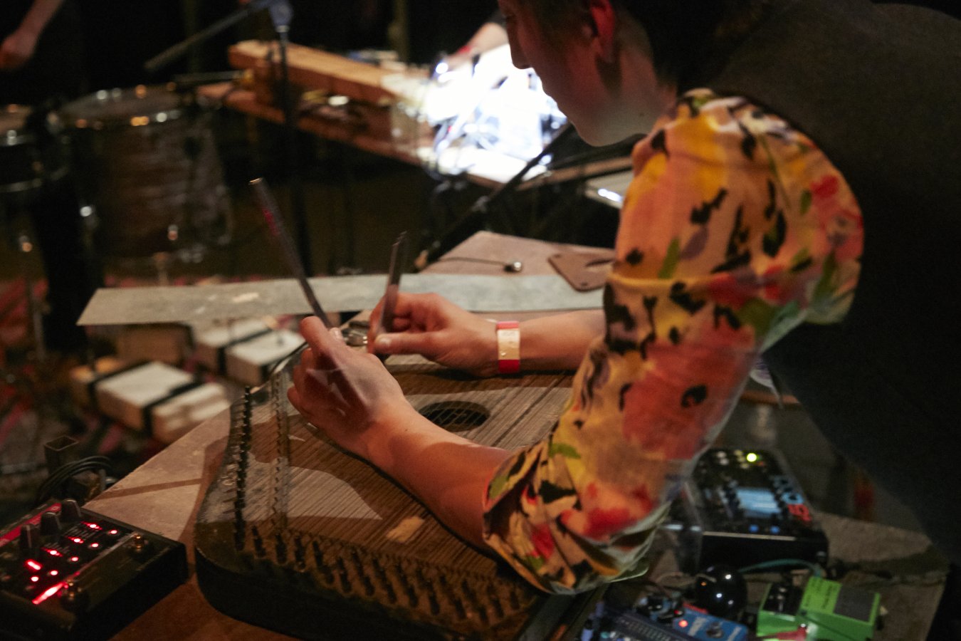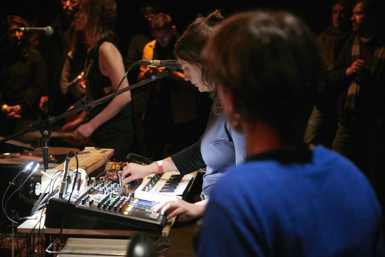 Avec un instrumentarium composite où percussions, objets du quotidien, cordophones et oscillateurs électroniques tissent un tapis sonore où poser leurs voix, les six musiciennes de ladr ache créent un improbable pont entre polyphonies aux échos baroques et signal en dents de scie saturé. Textes, musiques et chansons de récup glanés dans toutes les traditions du futur… Elles font puissamment scintiller le présent et invitent le public à encercler le cercle qu’elles forment sur scène ou dans la salle. Des cérémonies à vivre ensemble où le collectif l’emporte à chaque fois.