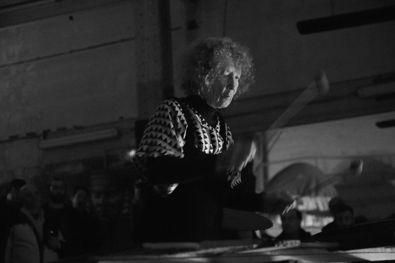 En 2022, Limpe Fuchs continue de poser sa voix sur un instrumentarium étonnant et tout personnel (pendulum, ballaststring, serpentinit, tubedrums, kettledrum), et donne vie à des cérémonies sonores toujours animistes. C’est sa première date en solo à Paris … et c’est à Sonic Protest.