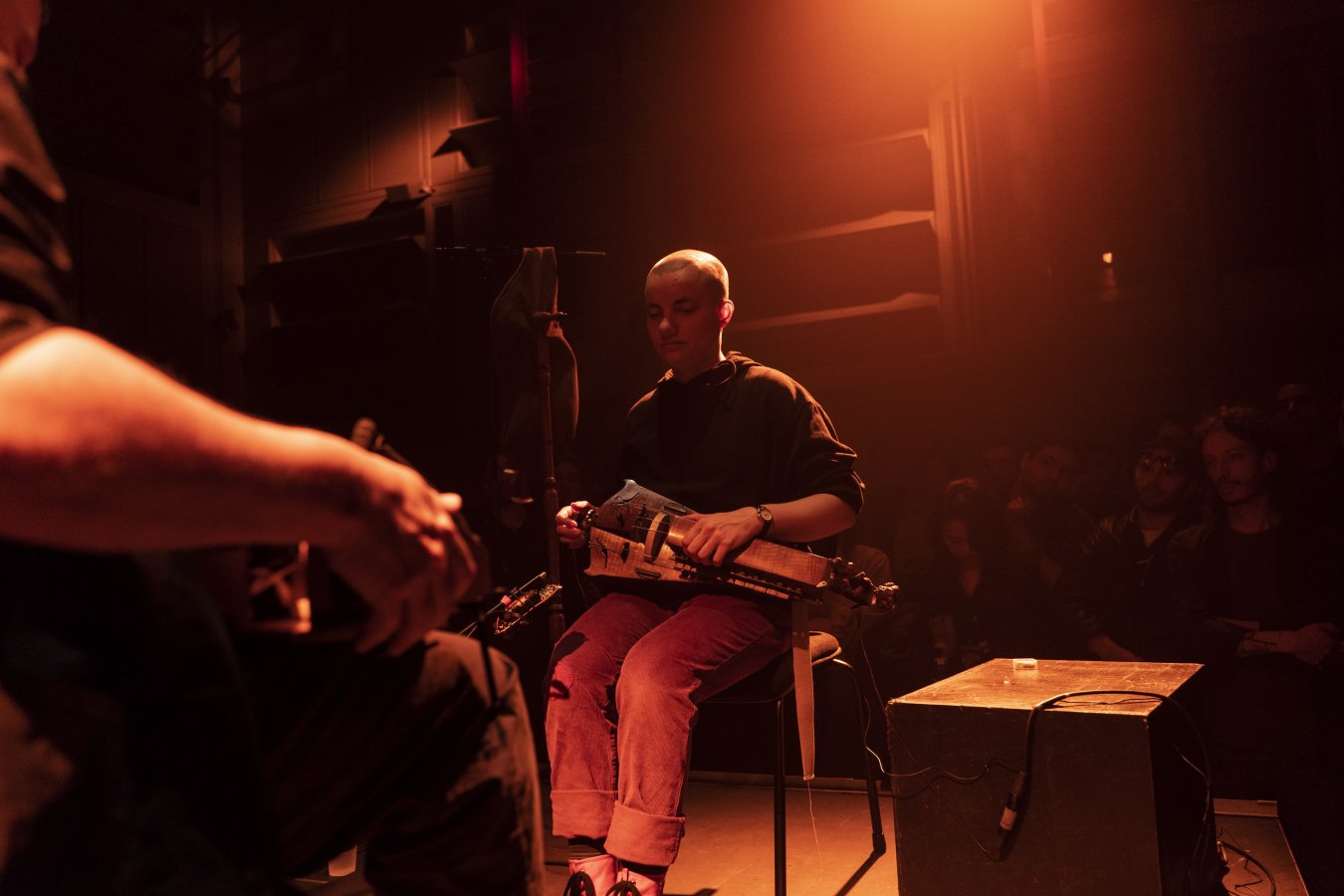 Lise Barkas joue de la vielle à roue et de la cornemuse, instruments dont elle explore toutes les possibilités, des sons et chuintements mis de côté par le répertoire traditionnel aux ritournelles total bourrée d'icelui.