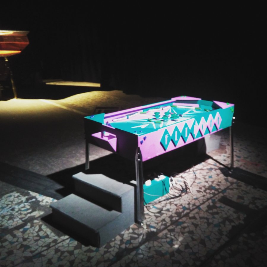 Bercé par les salles d’arcade lors de son adolescence en Australie, Lucas Abela leur rend un hommage décalé avec la construction de plusieurs flippers et bornes d’arcades, dont il tord la forme et l’intention pour les transformer en ma- chines musicales infernales.
