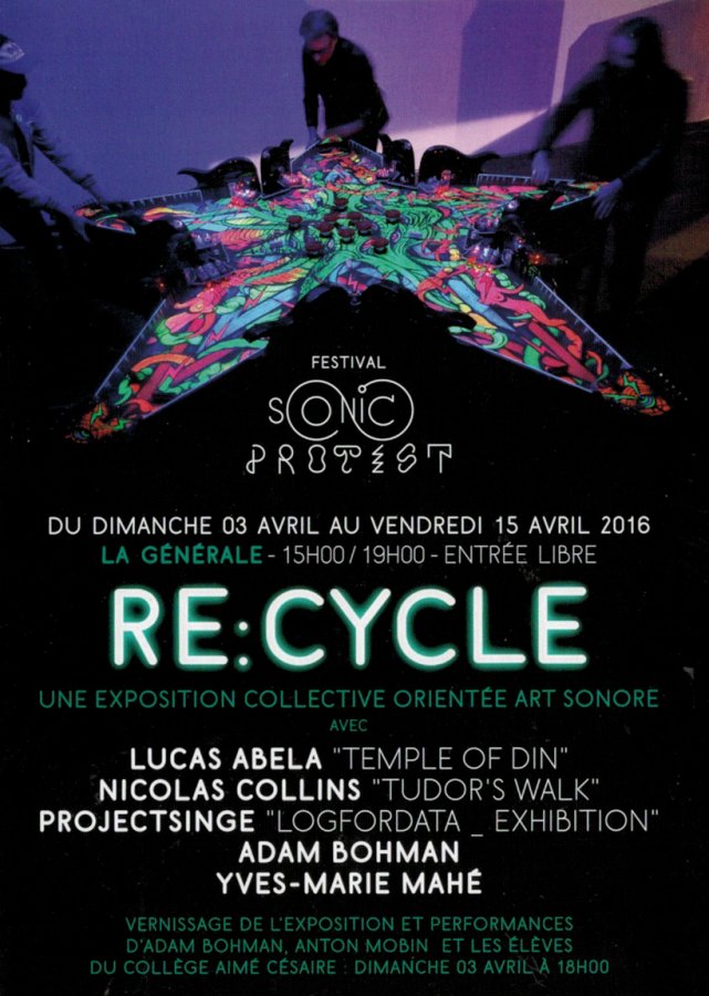 Lucas “Granpa” Abela est un artiste sonore et visuel, qui joue avec les codes de la pop culture et de la performance-avec-beau- coup-de-bruit-dedans. Figure importante de la scène expérimentale-noise internationale pour ses performances explosives sous le nom de Justice Yeldham, (le type avec la bouche collée à une plaque de verre ampli- fiée et qui finit les performances la gueule en sang, ça vous rappelle quelque chose ??), il conçoit également des installations sonores hors-normes telles que “Vinyl Rally” (montré pour la seule et unique fois en France lors du Festival Sonic Protest 2012) ou le tout récent “Temple de Din” qui sera à n’en pas douter un des points forts de l’ex- position RE:CYCLE.
