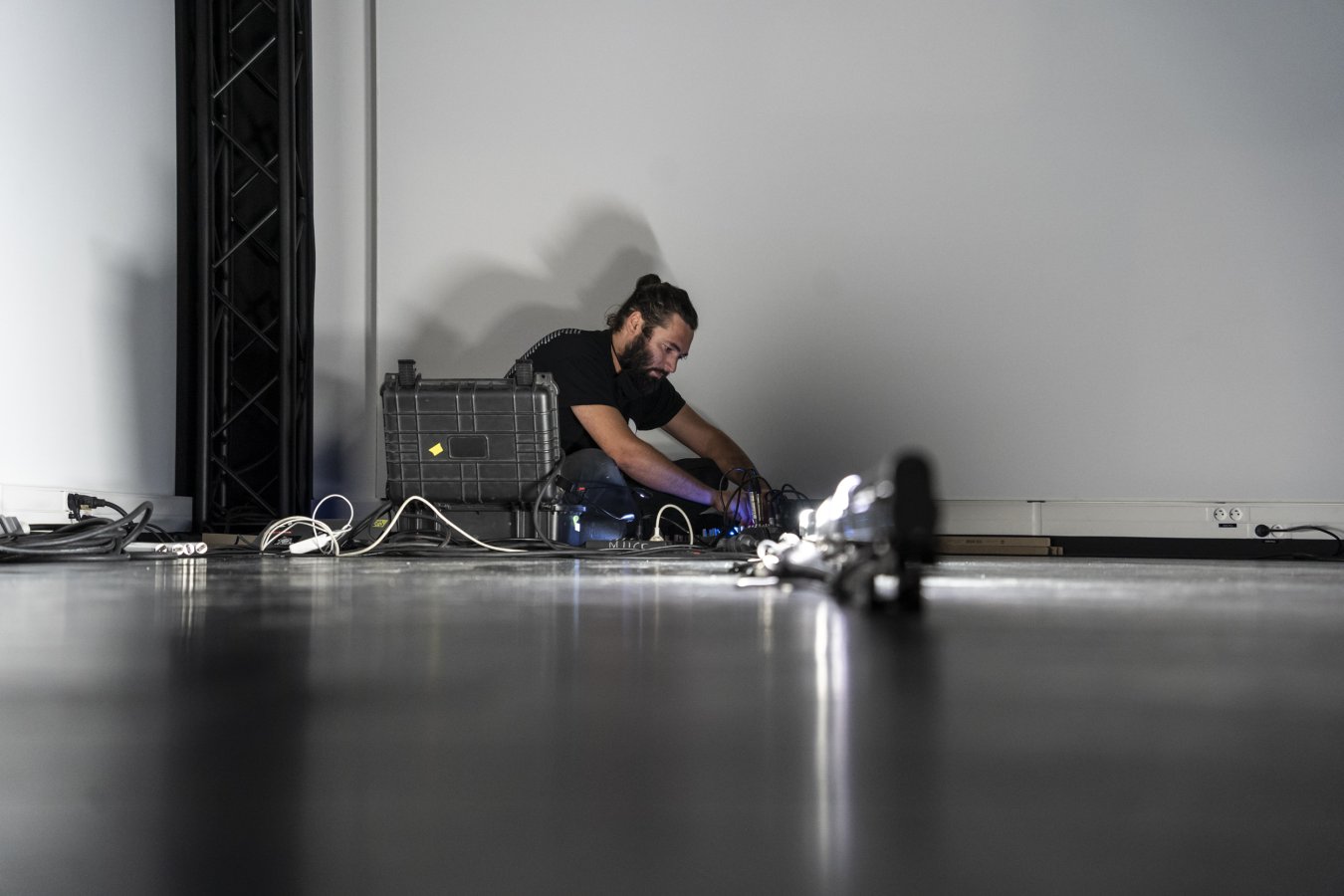 Plutôt bien occupé en général, à l’invitation de Sonic Protest il prend une semaine pour se poser à La Muse en Circuit et préparer la diffusion de deux pièces adaptées au studio Luc Ferrari (dedans) et à la cour (dehors) de du Centre National de Création Musicale alfortvillais !