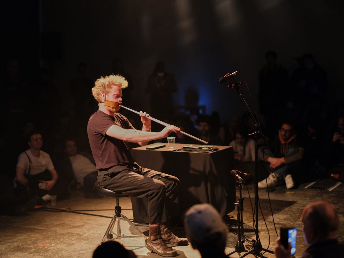 Personne ? Hhhmm, Lukas de Clerck a probablement quelques idées sur la question puisque c’est sur la réinvention de cet instrument que se base une bonne part de son travail. Dépassant l’archéo-musicologie, les recherches empiriques de cet artiste inévitablement autodidacte l’ont conduit (en collaboration avec Noir Métal et Jot Fau) à la création d’une version de cet instrument millénaire, The Telescopic Aulos of Atlas. Textures bruitées, microtonalité, éternuements, sifflements ou effets psycho-acoustiques… En étendant le vocabulaire de cet instrument unique, Lukas de Clerck s’extrait de l’histoire pour évoluer entièrement dans la vibration du présent, dans une remarquable tension entre l’extra et l’ordinaire.