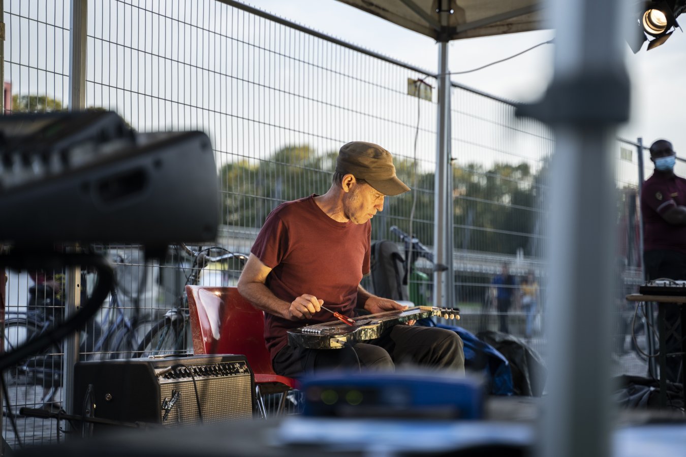Henritzi, membre du noise unit Dustbreeders (SP2019) maltraite sa guitare depuis des décennies.