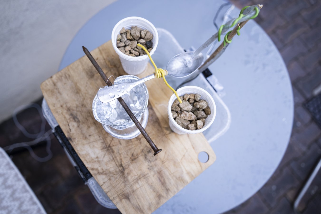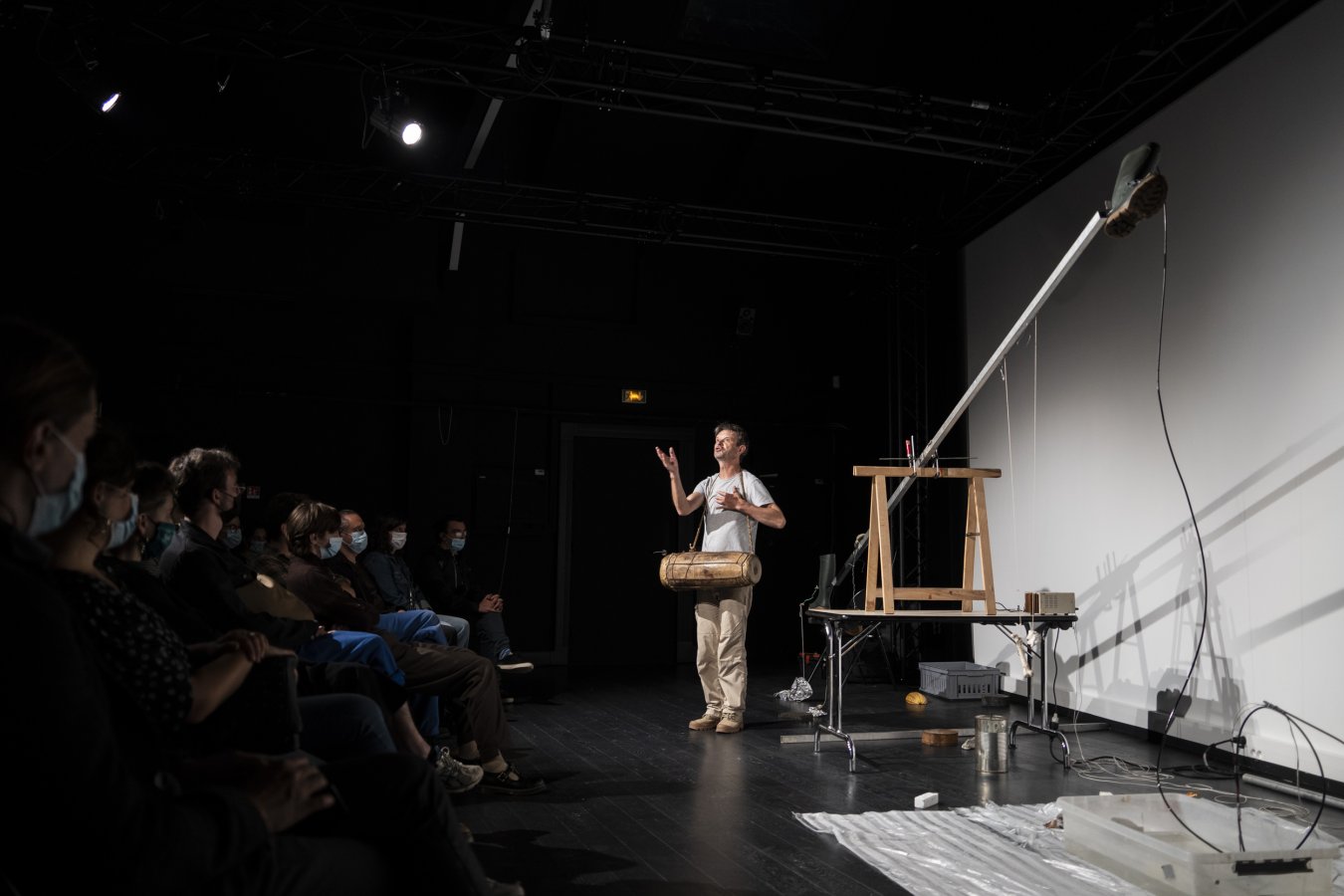 Aussi influencé par l’écoute de la pluie du haut du clocher où il a joué du carillon pendant deux ans que par les travaux d’Alvin Lucier ou Ellen Fullman, Pierre Berthet bâtit un large éventail d’objets qui sonnent, d’instruments fragiles plus ou moins motorisés. En cherchant des points d’équilibres précaires, il met en place des systèmes qui s’interdisent la fiabilité. Entre installation et environnement activable lors de performances, le petit monde de Pierre Berthet réhabilite des objets du quotidien en faisant entendre leurs qualités sonores, tel l’aspirateur inversé, l'Expiration (un de ses plus grands tubes) qu’on espère bien entendre donner la pulse dans la cour de la Muse en Circuit.