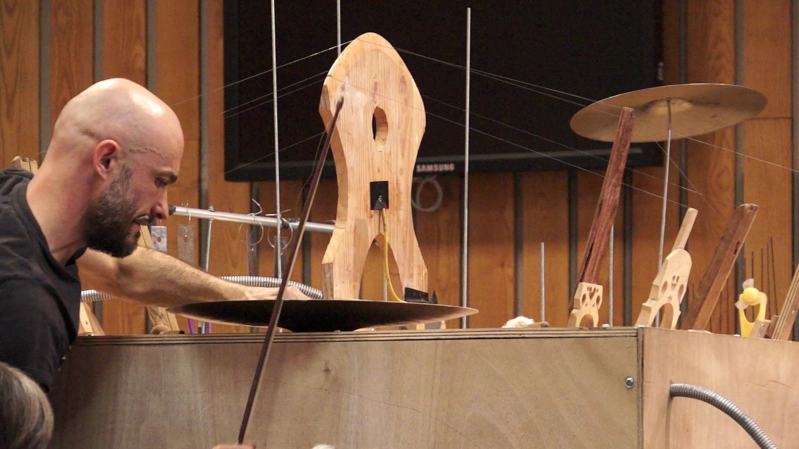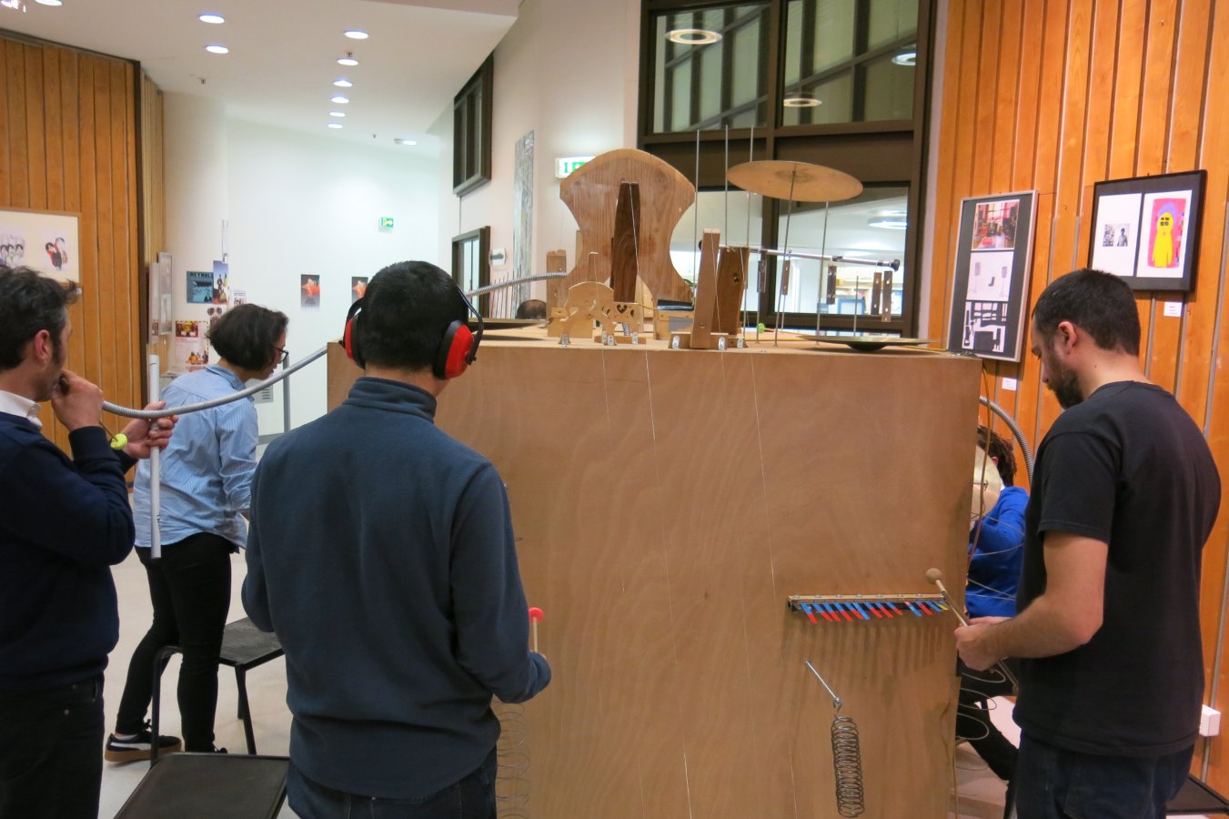 il réalise avec les jeunes et leurs éducateurs un parcours sonore pour le parc de l’établissement. Pour le vernissage de l’exposition il fera une petite présentation “live” et amplifiée de son instrument.
