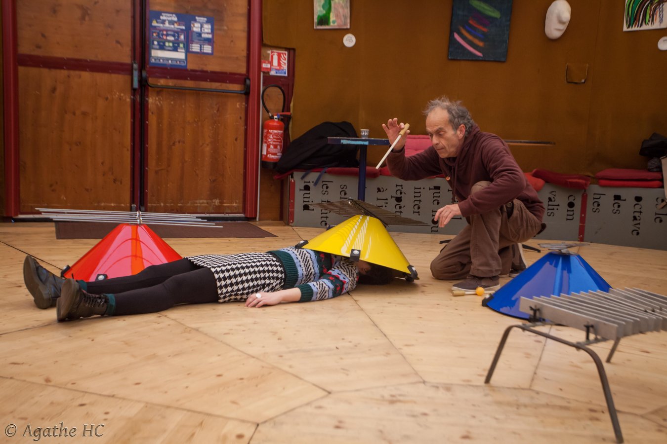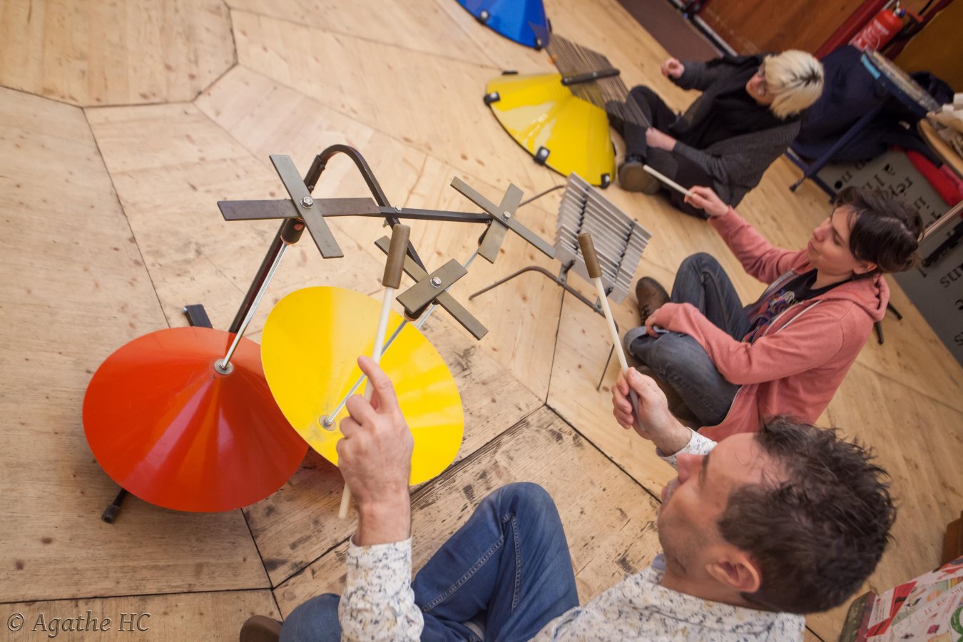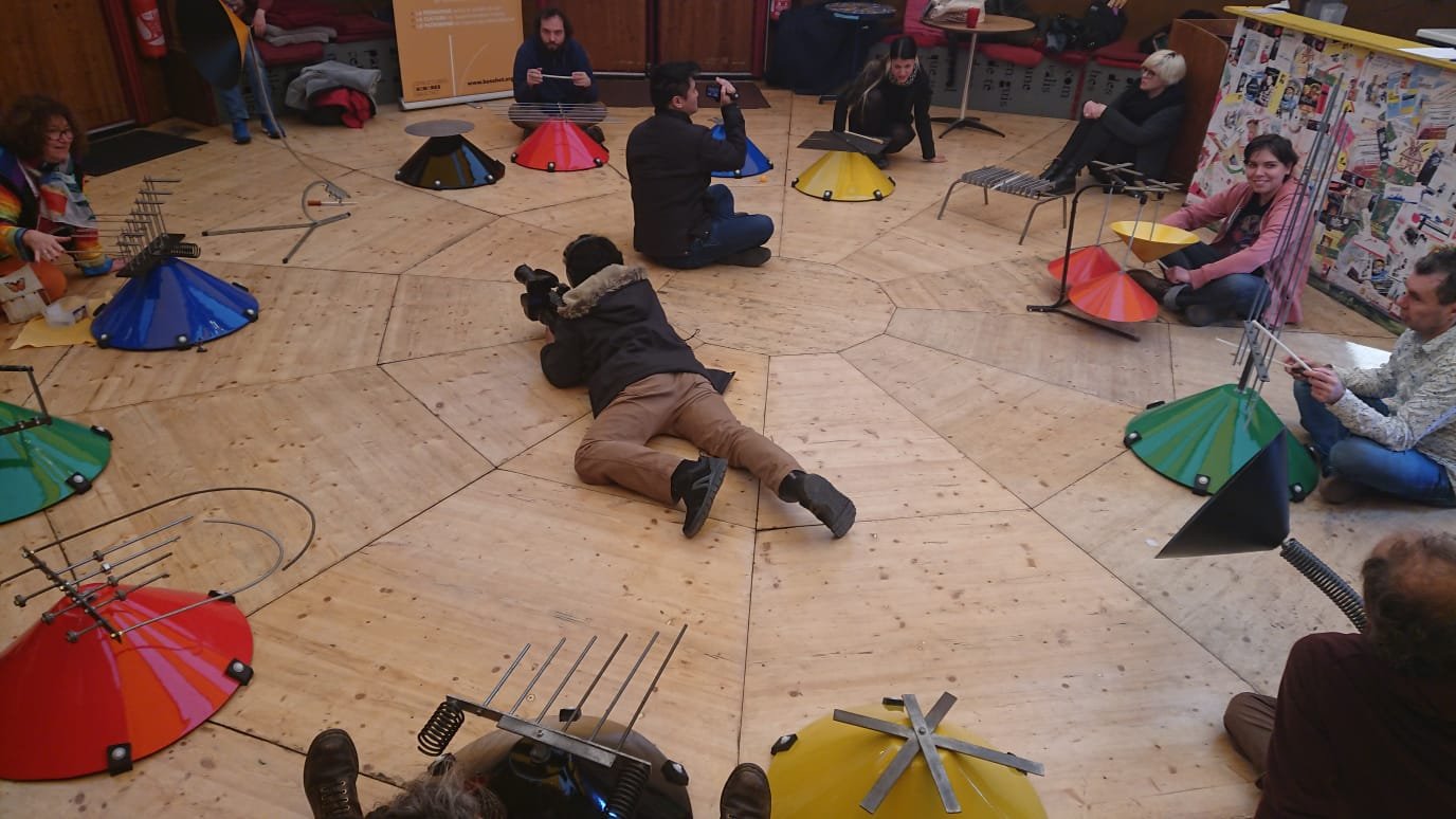 Elle propose un atelier découverte et exploration de ces instruments hors-normes avec tous les sens. Jeux collectifs et expérimentation de dispositifs approfondissant l'écoute pour arriver à un moment d'improvisation collective.