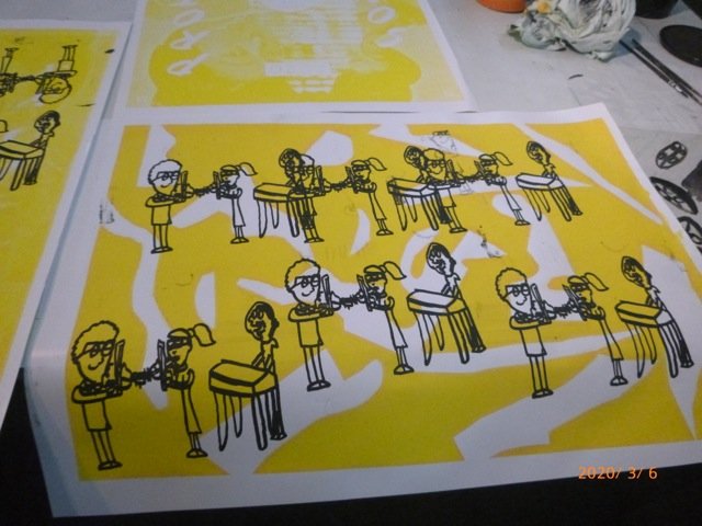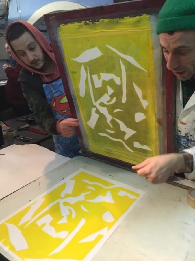 co-animé par l'atelier sérigraphie de l'HDJ d'Antony, le sérigraphe Igor Boyer (hors-cadre) et Matthieu Morin (collectif La Belle Brute)